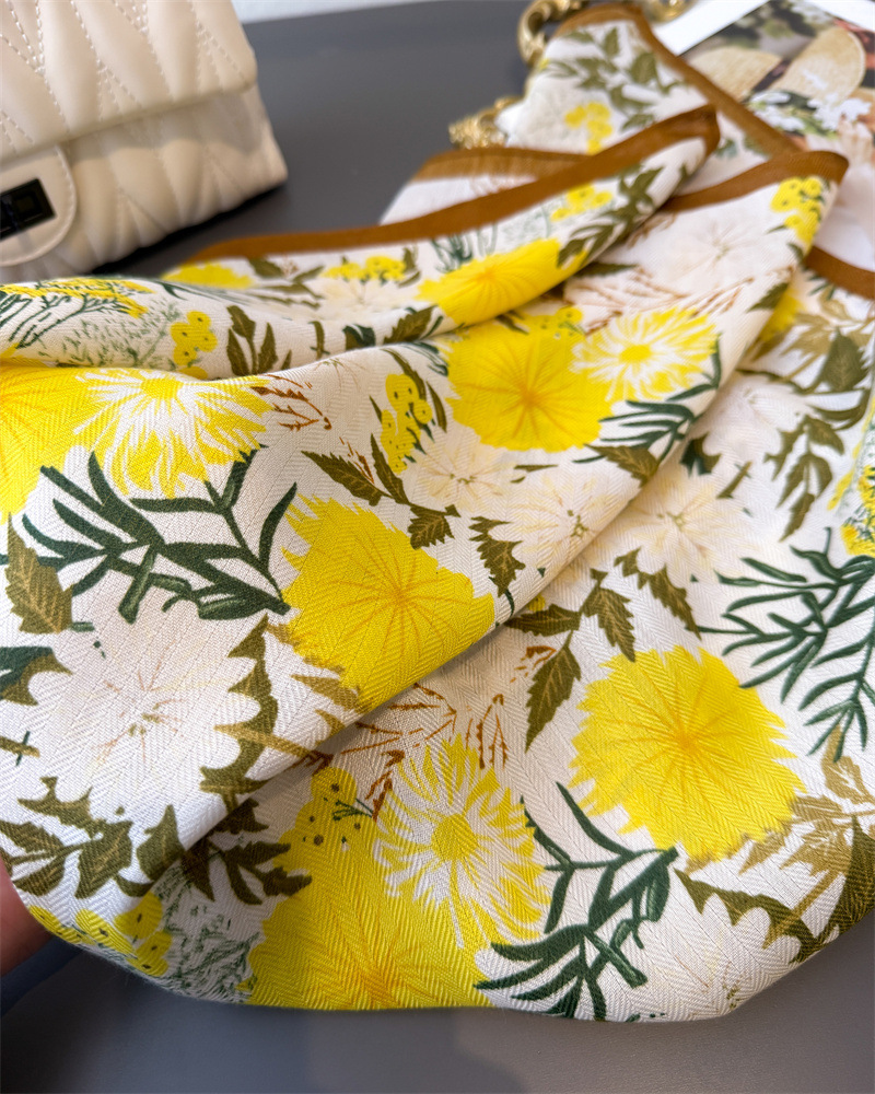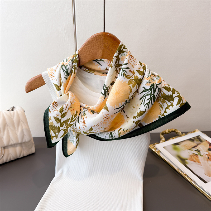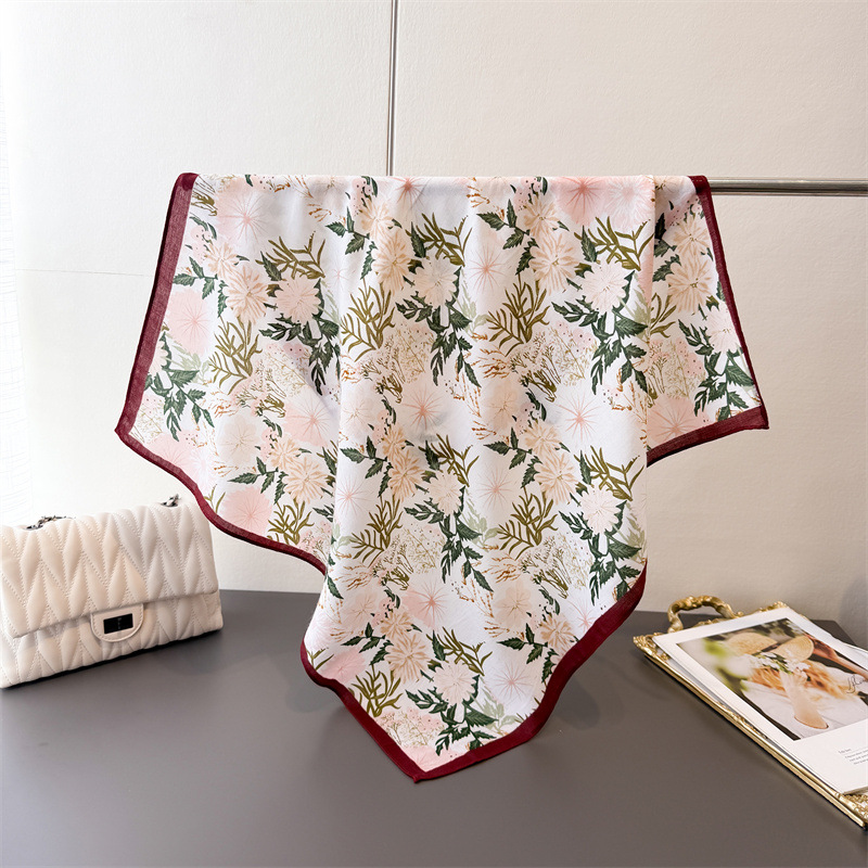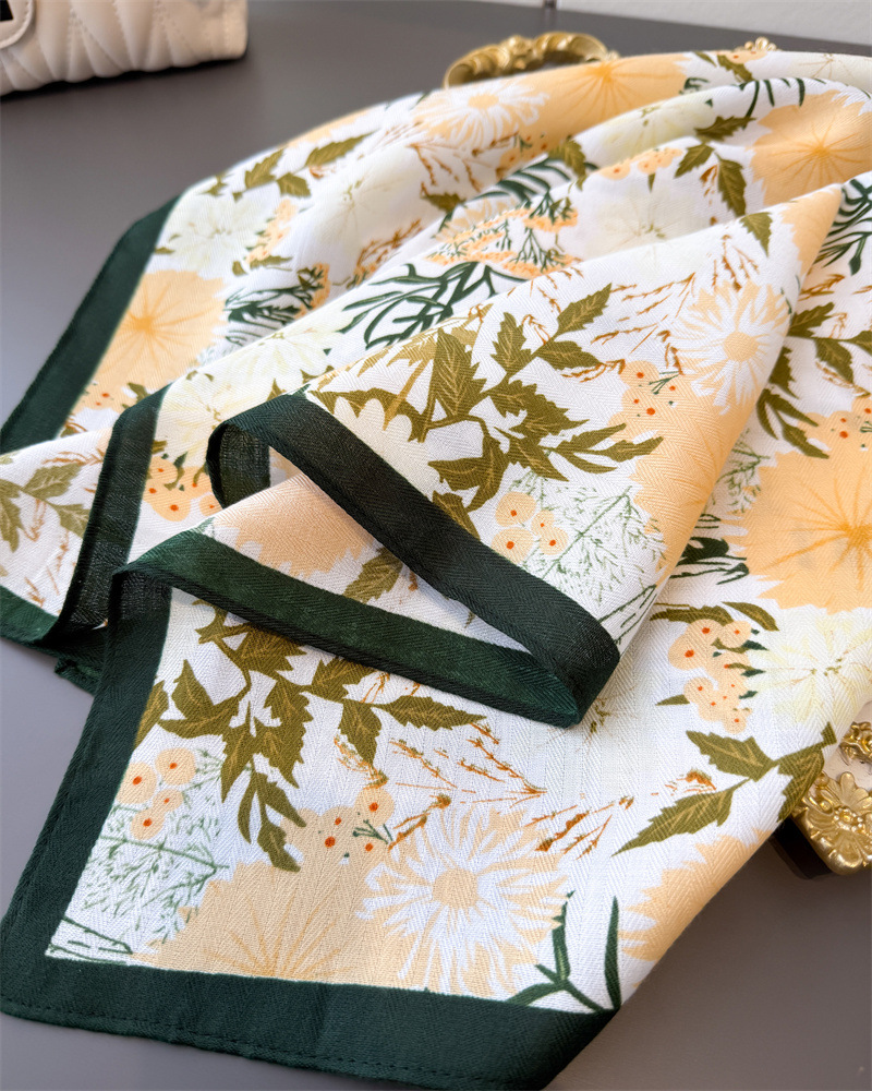 진루이 꽃 헤링본 패턴 면 리넨 센스 작은 스퀘어 실크 스카프 모조 벨벳 헤드 스카프 숄 선스크린 스카프 여성 스카프스토어 가기