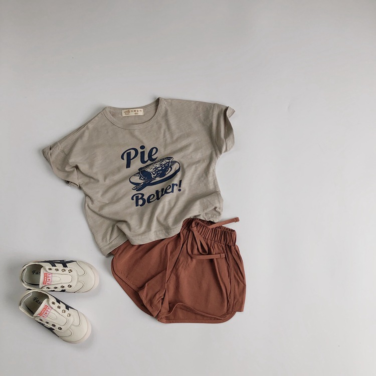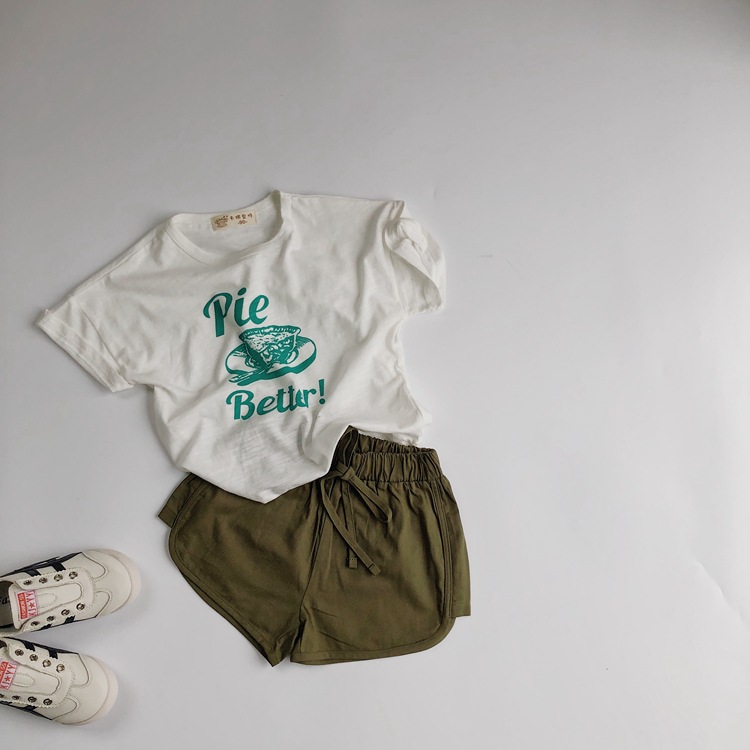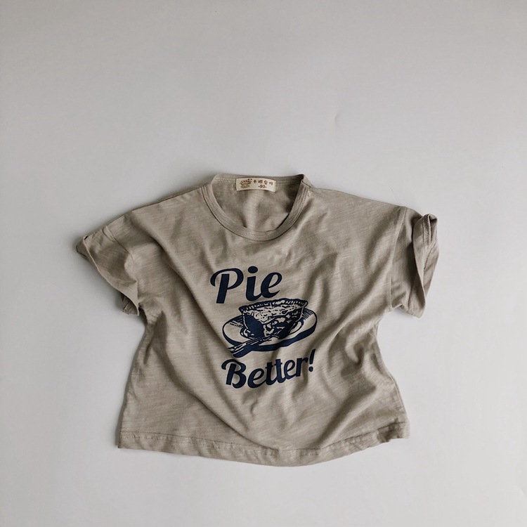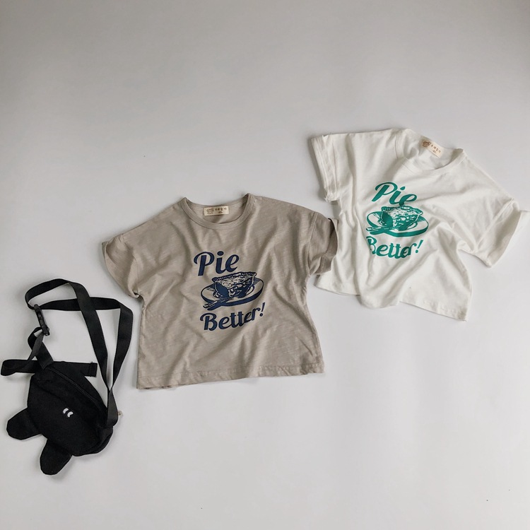 한국 어린이 반팔 티셔츠 여름 새 소년 소녀 편지 크루 넥 티셔츠 어린이 트렌디 탑