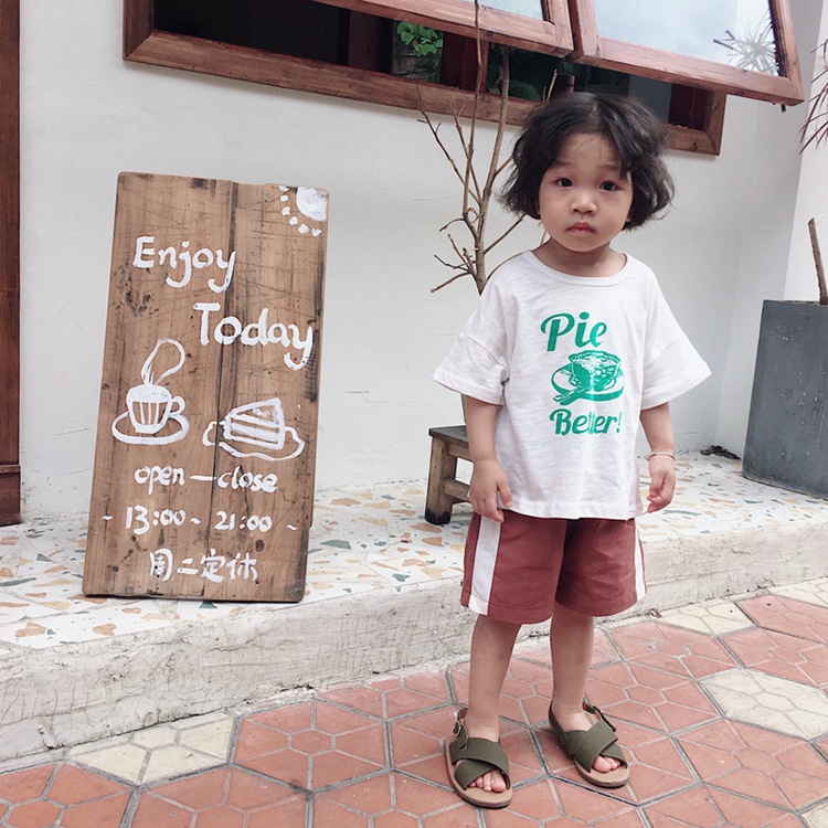 한국 어린이 반팔 티셔츠 여름 새 소년 소녀 편지 크루 넥 티셔츠 어린이 트렌디 탑스토어 가기