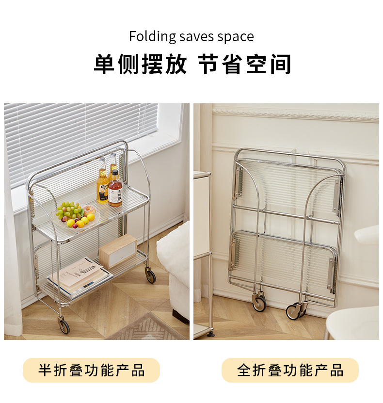 ZX 창홍 유리 트롤리 거실 소파 사이드 테이블 접는 차 모바일 선반 투명 커피 테이블스토어 가기