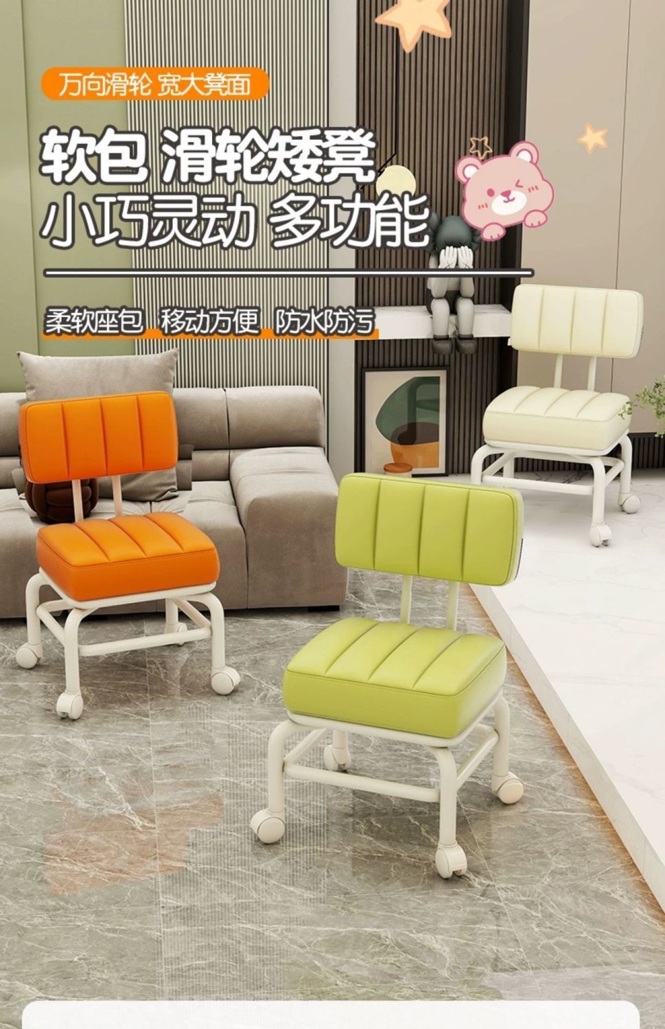 유니버설 휠 의자 등받이 풀리 낮은 의자 인터넷 인기있는 어린이 작은 의자 가정용 소파 아티팩트 베이비 휠 벤치