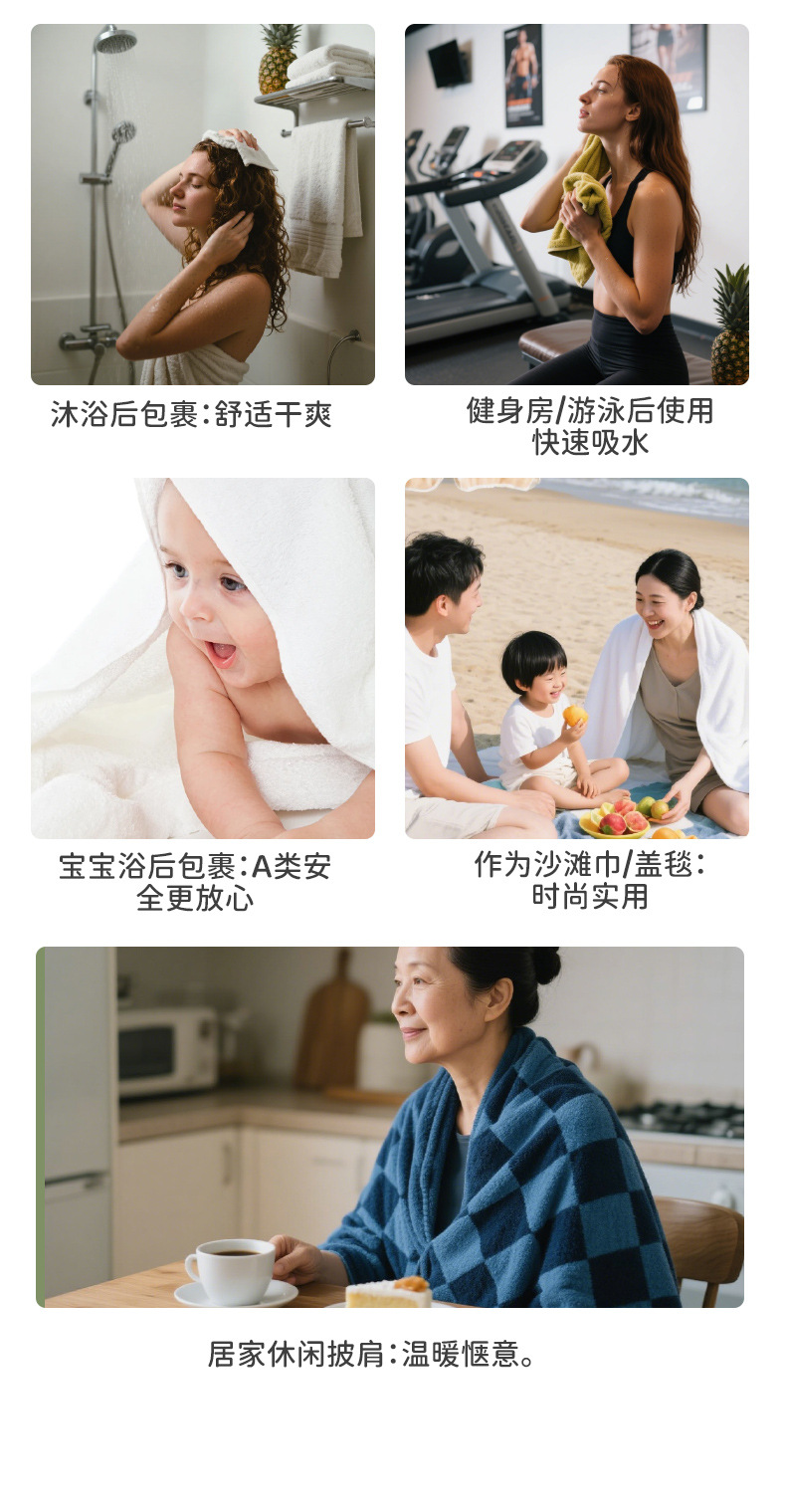 • 목욕타월, 수건, 헤어캡 3종 세트