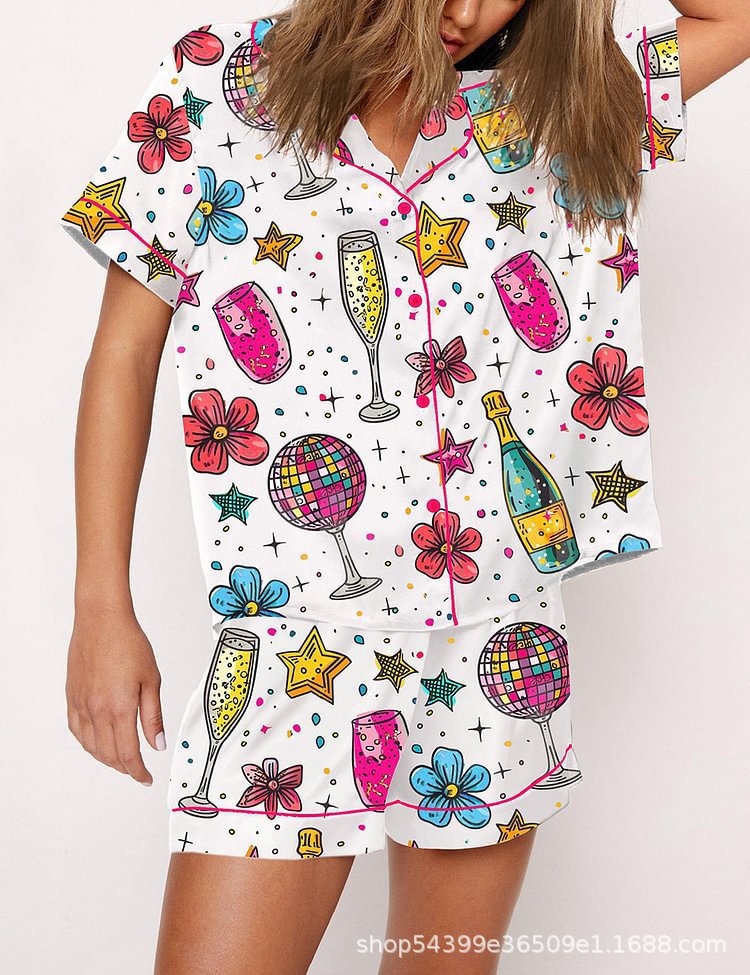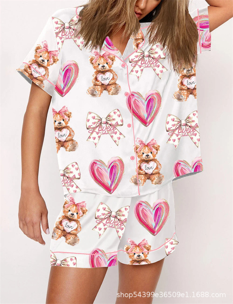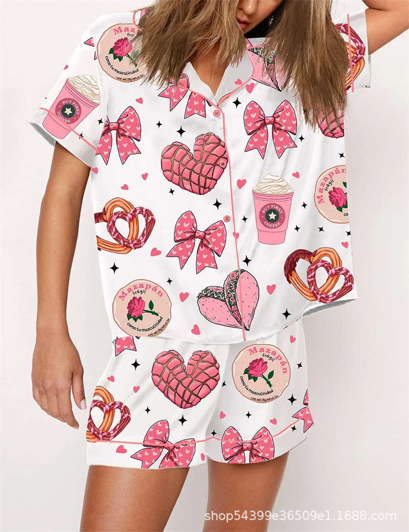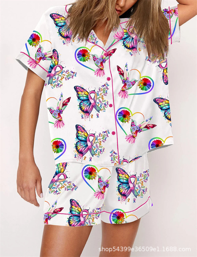 유럽과 미국의 국경 간 Amazon 독립 스테이션 3D 디지털 인쇄 캐주얼 반팔 반바지 홈웨어 정장 여성 POD