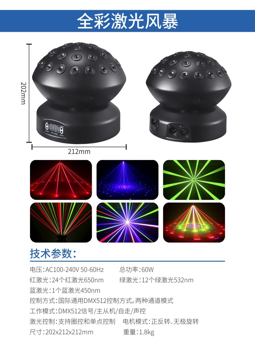풀 컬러 레이저 폭풍 빛 LED 무대 조명 웨딩 장식 성능 장비 바 레이저 DMX 레이저 빛
