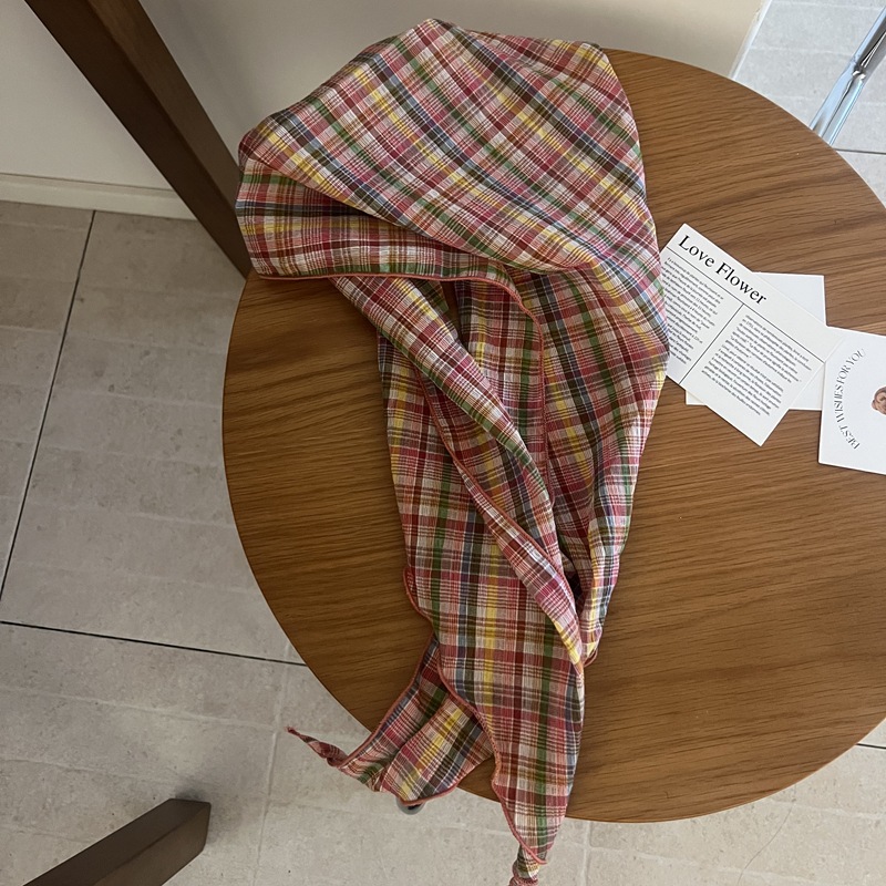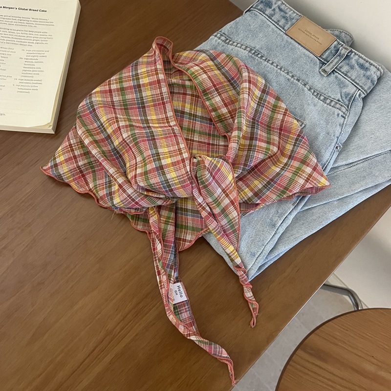 • 컬러풀한 격자 무늬 삼각형 스카프