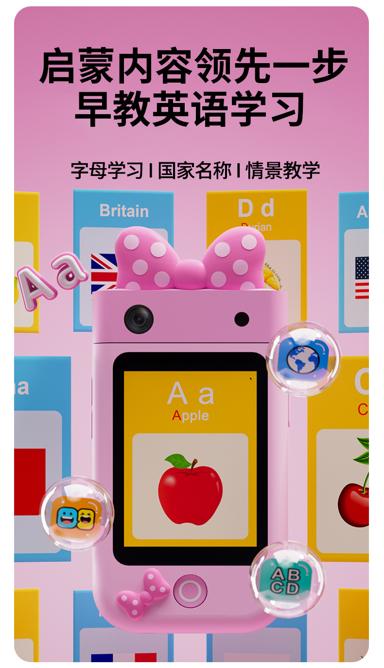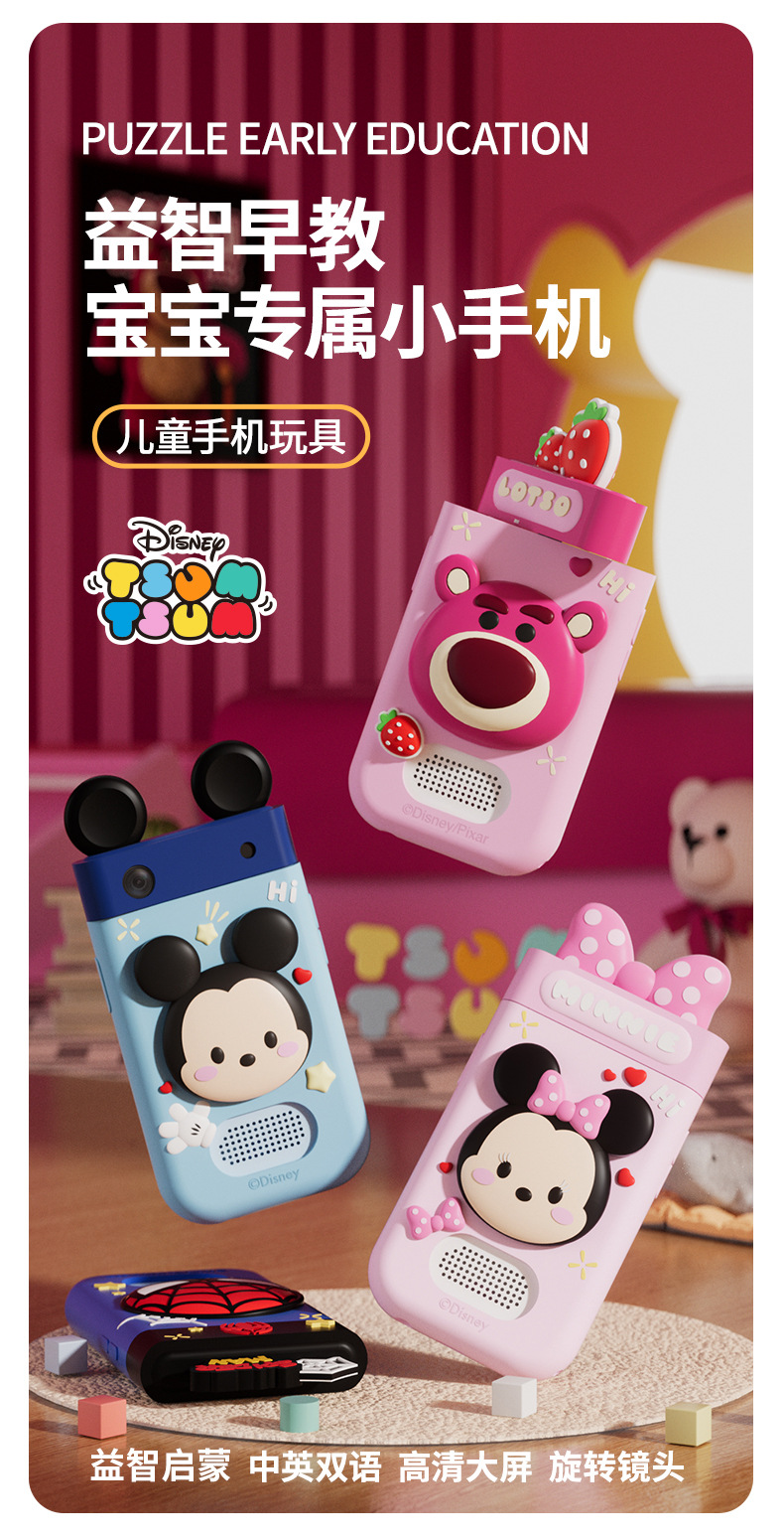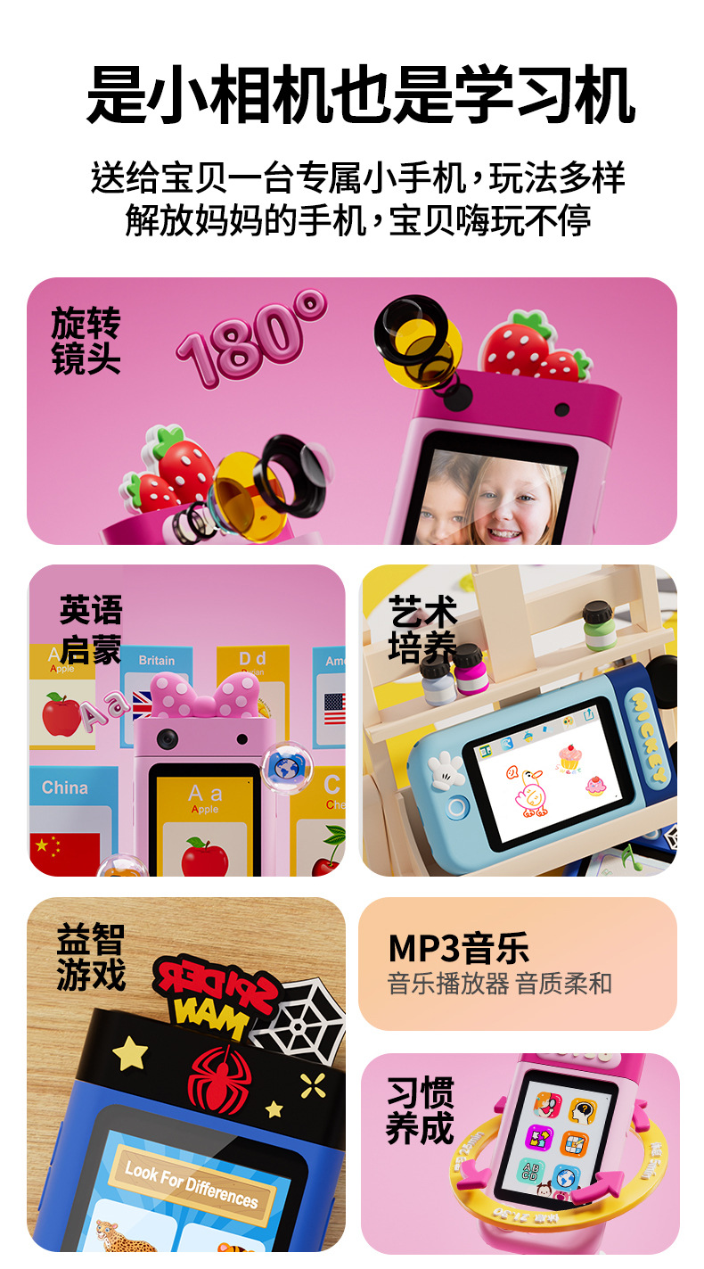 I9 디즈니 조기 교육 장난감 180도 회전 사진 촬영 및 비디오 미니 카메라 교육용 어린이 터치스크린 스마트폰
