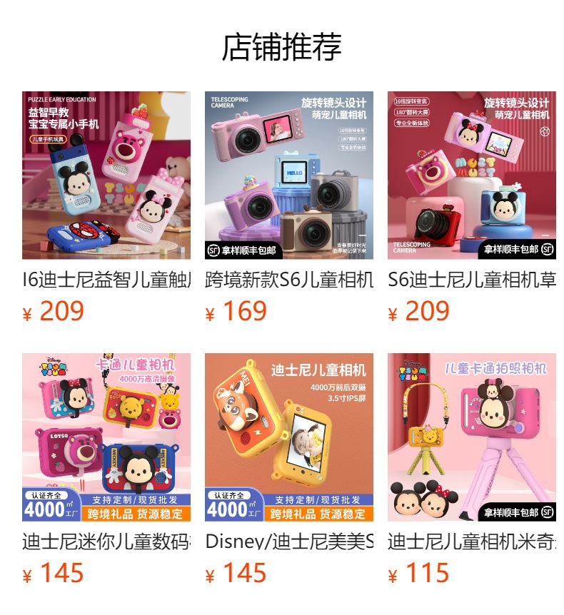 I9 디즈니 조기 교육 장난감 180도 회전 사진 촬영 및 비디오 미니 카메라 교육용 어린이 터치스크린 스마트폰스토어 가기