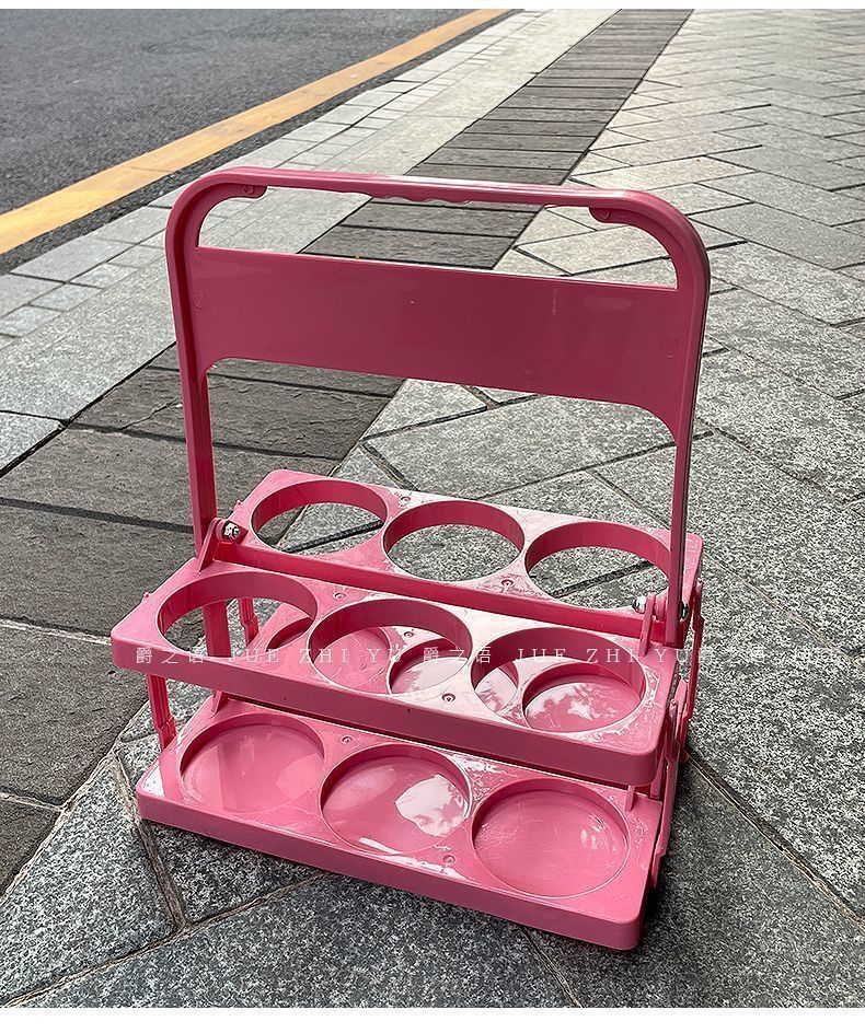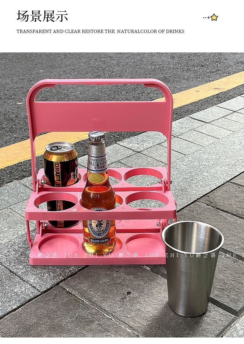 핑크 소녀 심장 캠핑 피크닉 바구니 접는 음료 맥주 자체 가져온 손잡이 바구니 커피 우유 차 휴대용 수확
