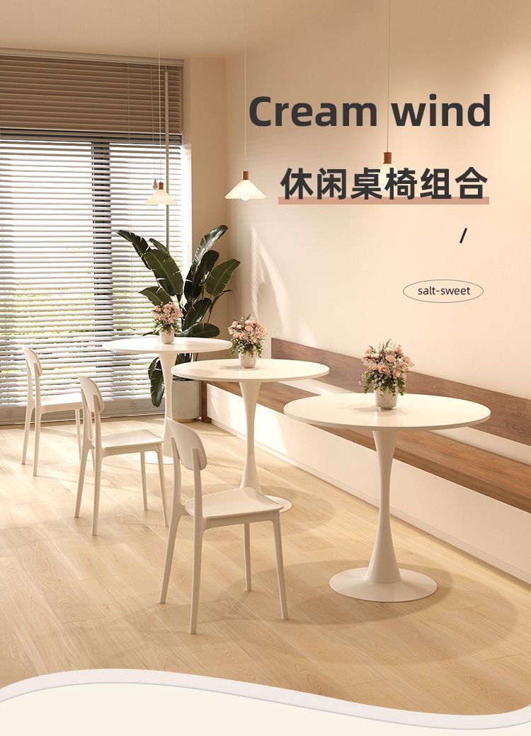 인터넷 연예인 흰색 북유럽 스타일 ins 작은 원형 협상 테이블 밀크티 커피 숍 테이블과 의자 조합 튤립 식탁