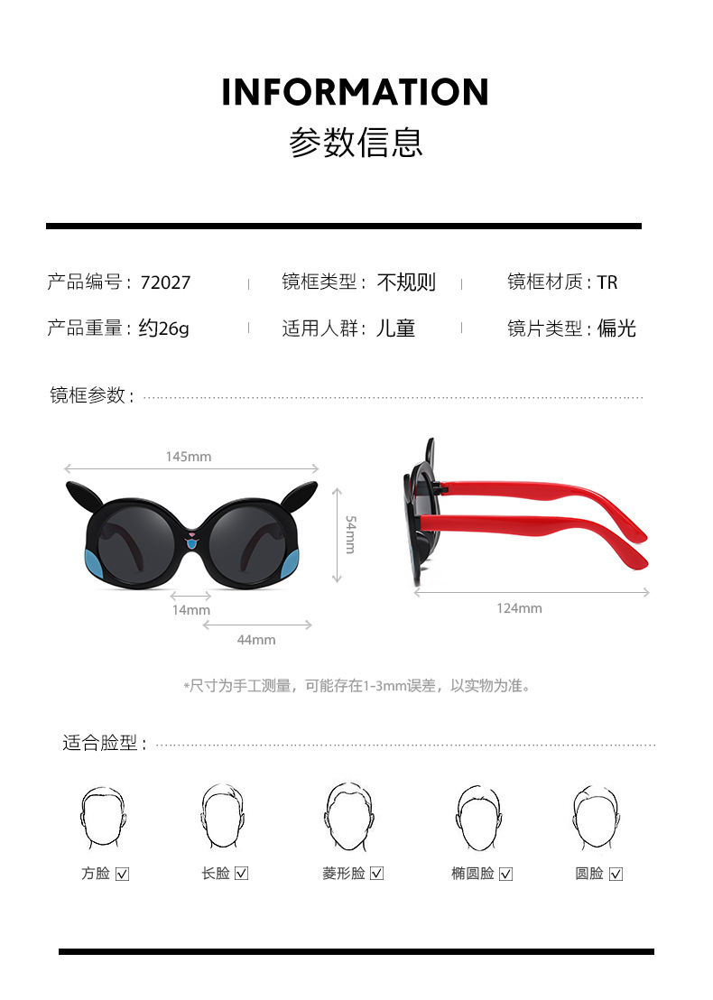 패션 어린이 만화 편광 선글라스 자외선 방지 72002 귀여운 피카추 라이트 쉐이딩 선글라스
