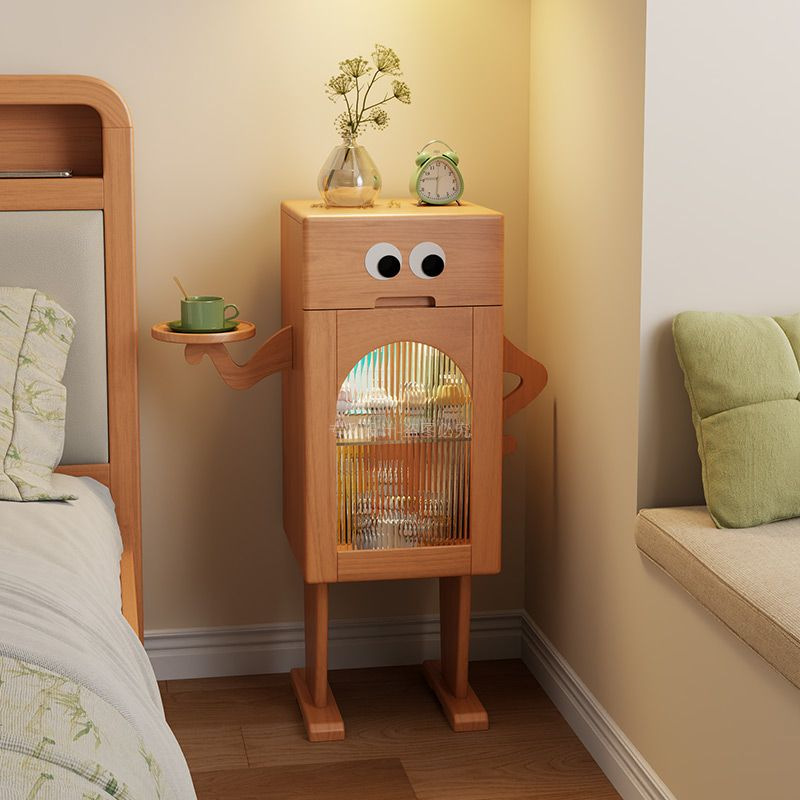 단단한 나무 침대 옆 테이블 저장 침실 저장 캐비닛 거실 창조적 인 버킷 로봇 측면 램프 어린이 침대 옆 캐비닛