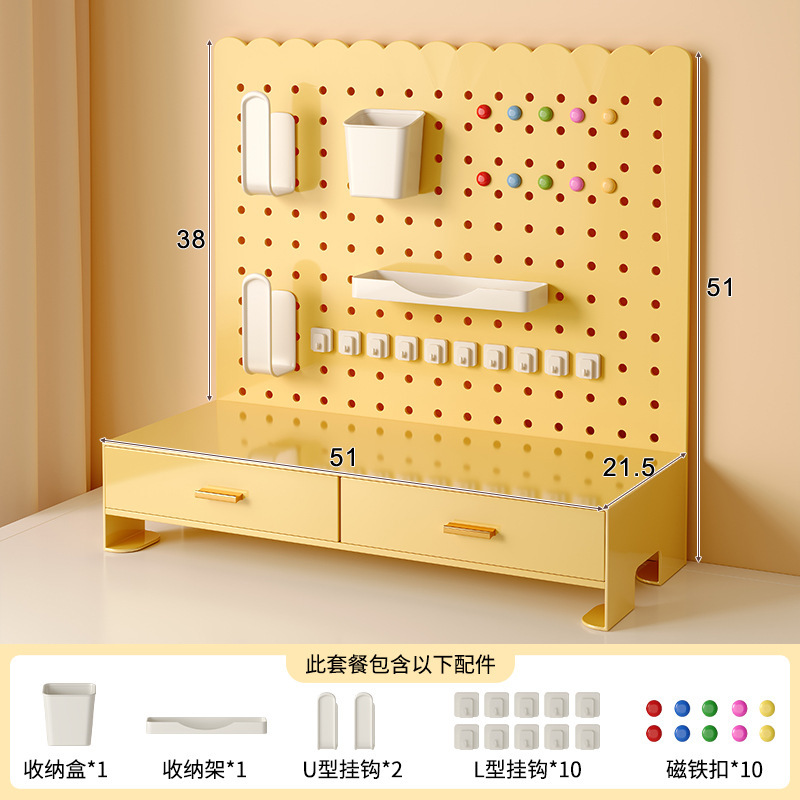 • 【크림 옐로우 콤보】 탁상 정리대 + 천공판 철제 선반♜✦