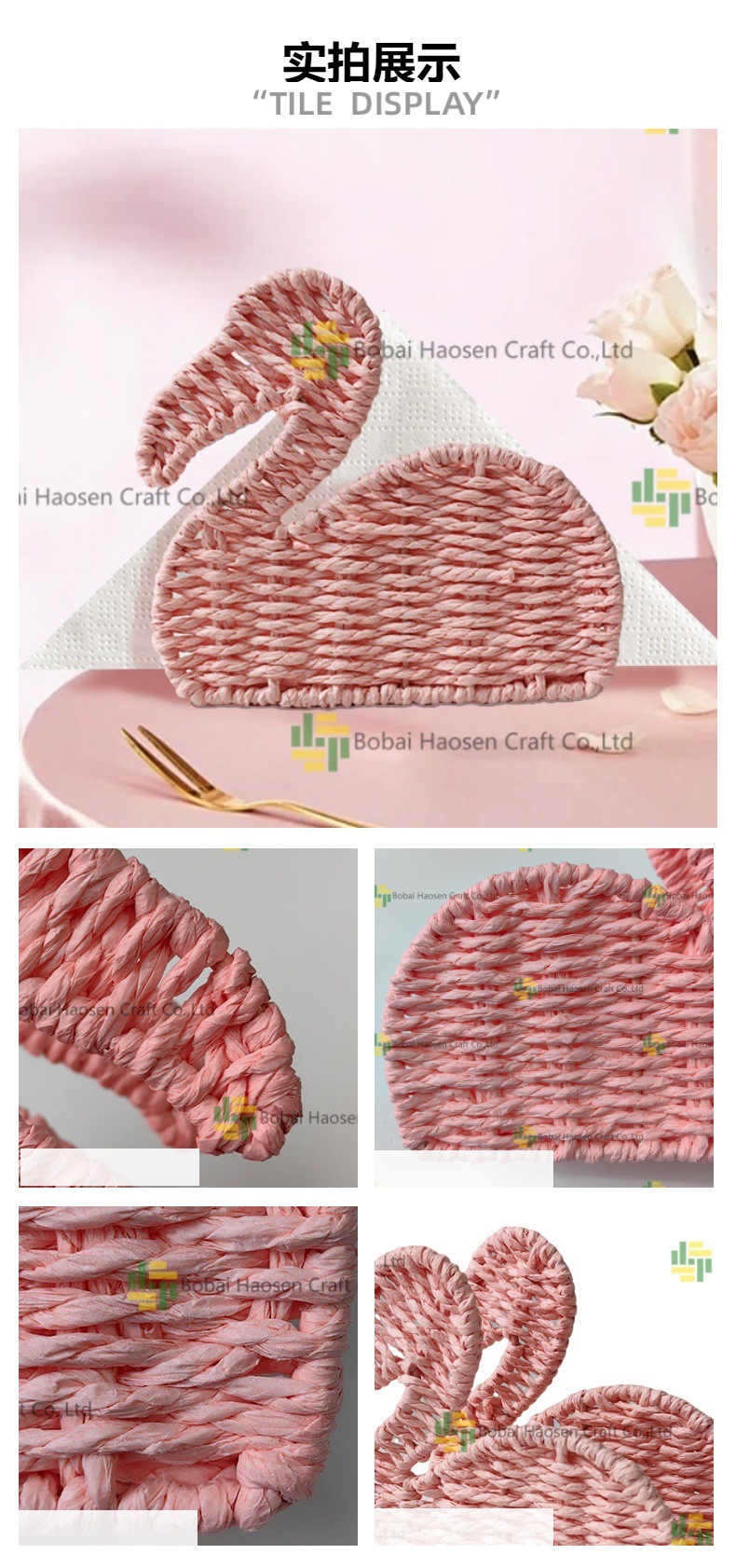 사용자 정의 종이 로프 귀여운 동물 냅킨 홀더 손으로 짠 핑크 크리 에이 티브 스토리지 랙 호텔 레스토랑 데스크탑 스토리지