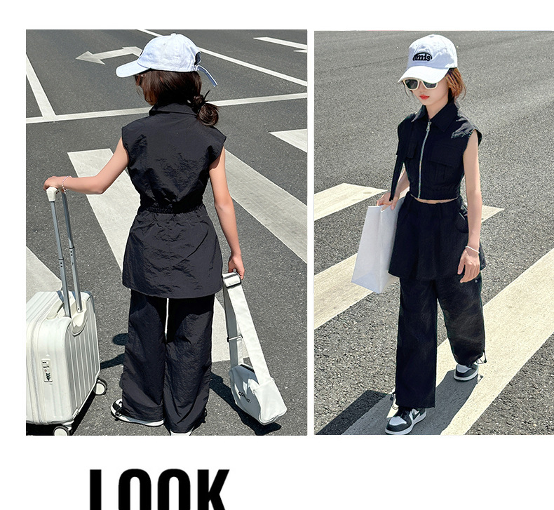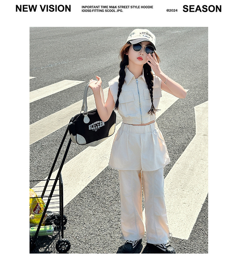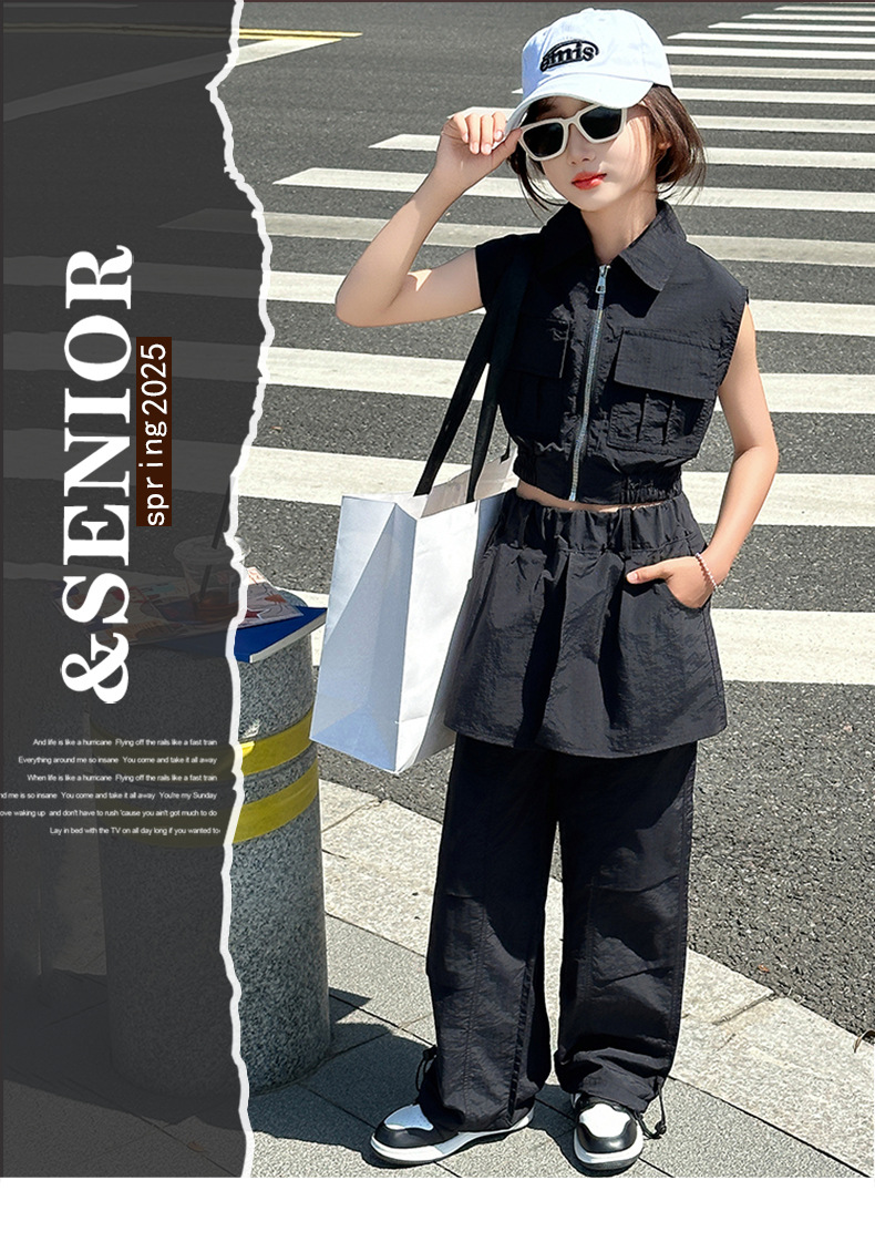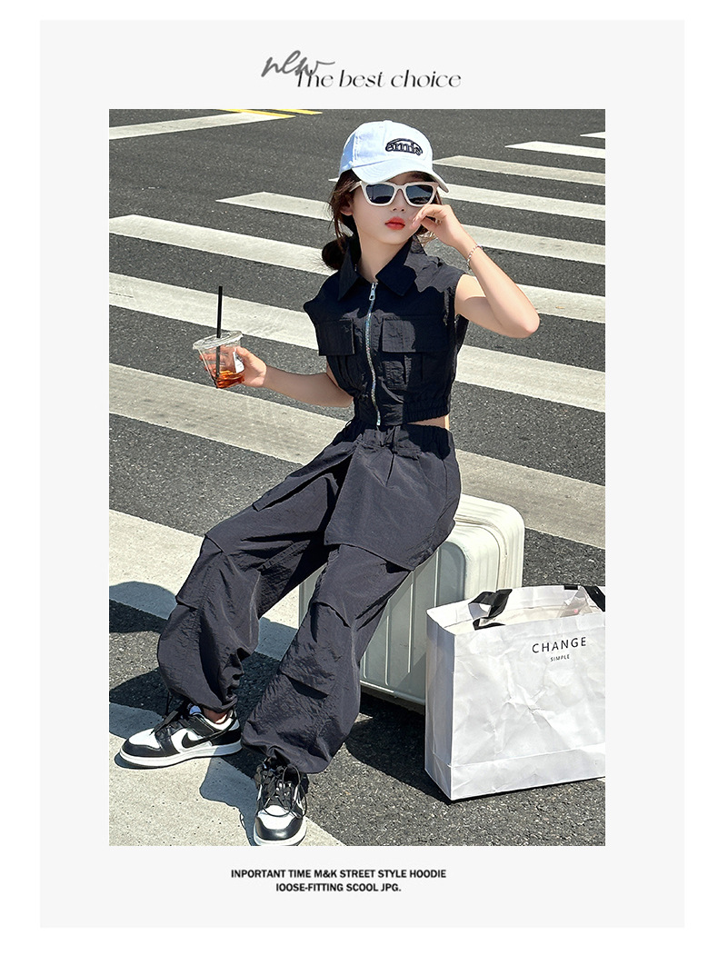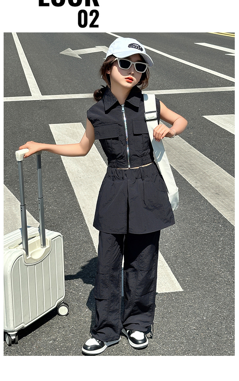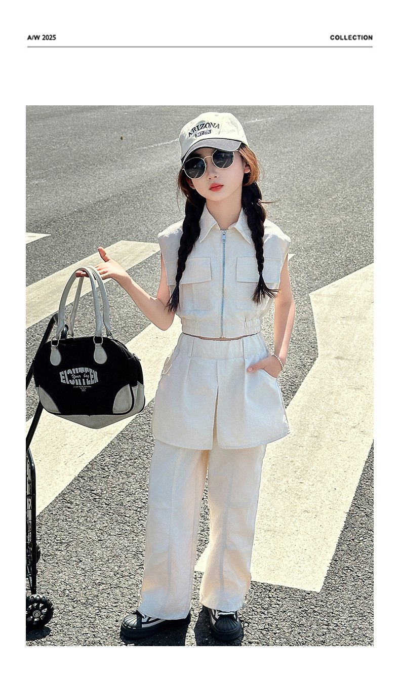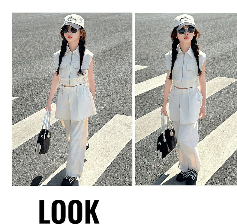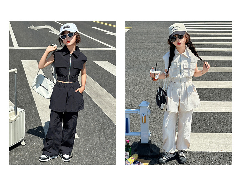 여자 2025 여름 프라이드 스트리트 외국 스타일 세트 여자 민소매 조끼 탑 큰 어린이 패션 쿨 크록 바지 투피스 세트스토어 가기