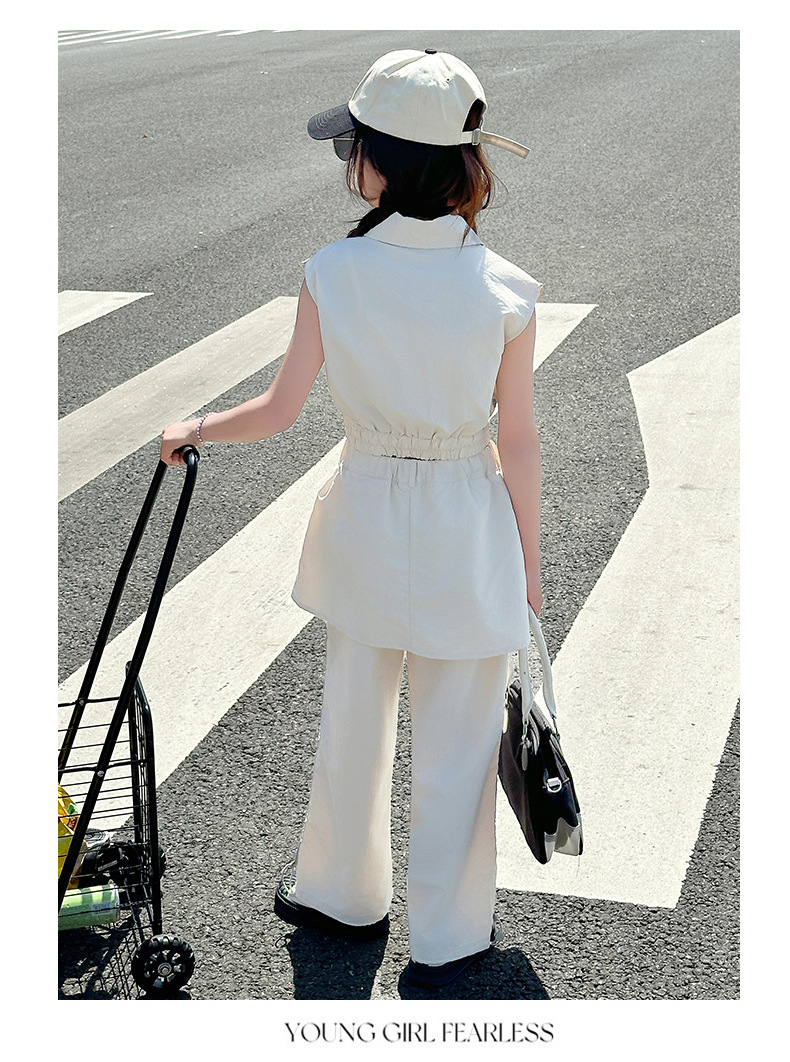 여자 2025 여름 프라이드 스트리트 외국 스타일 세트 여자 민소매 조끼 탑 큰 어린이 패션 쿨 크록 바지 투피스 세트
