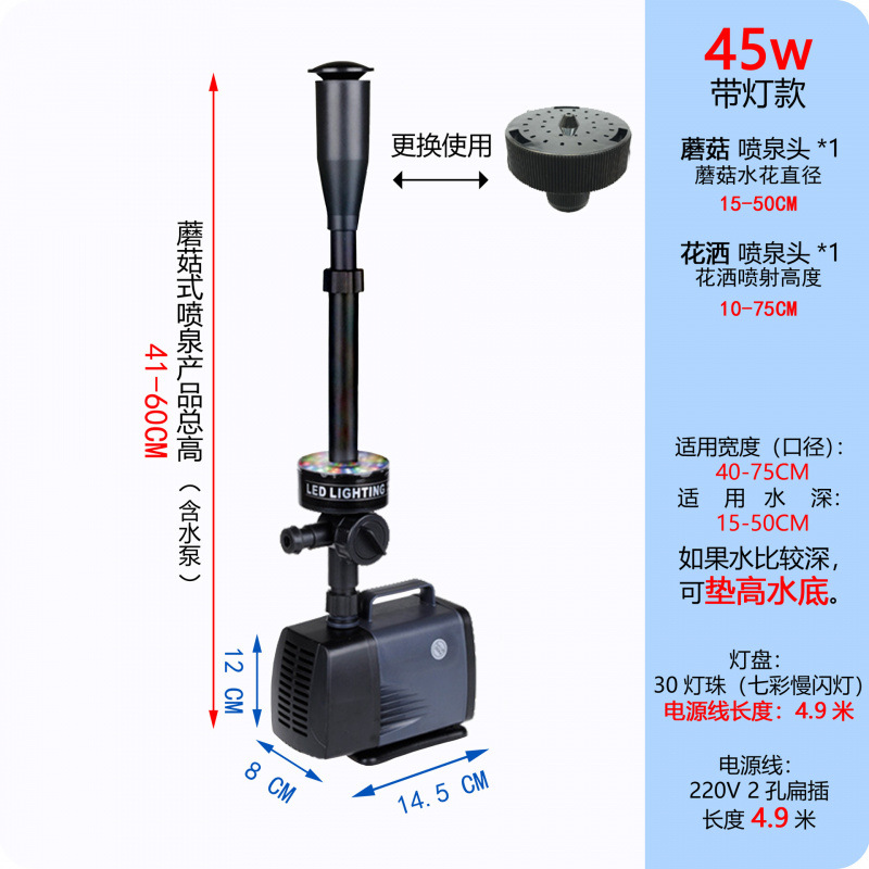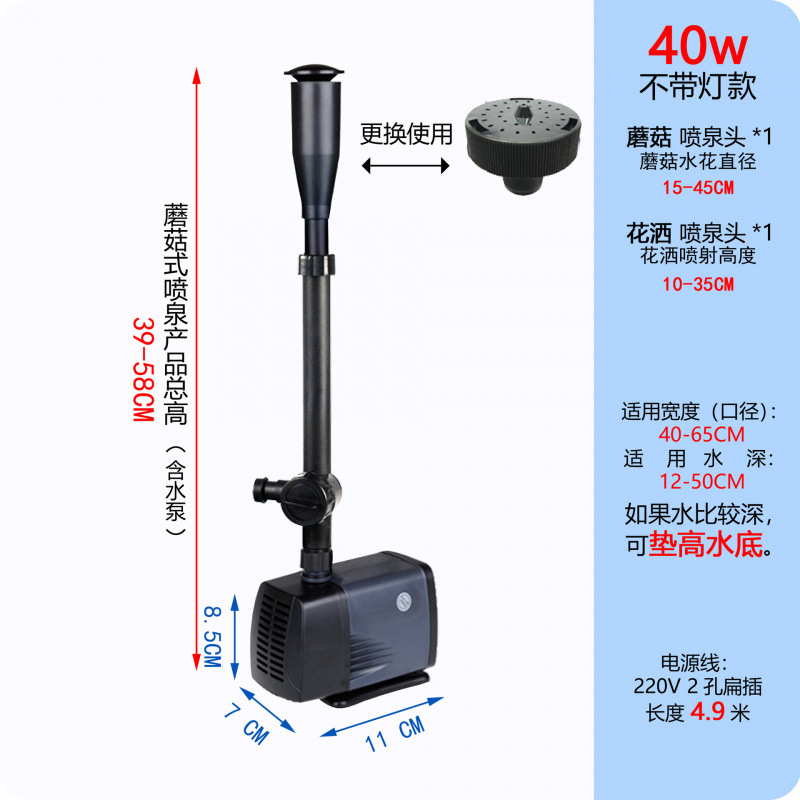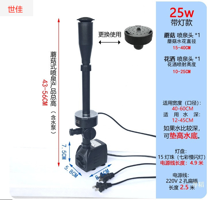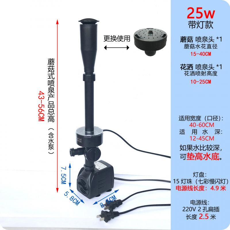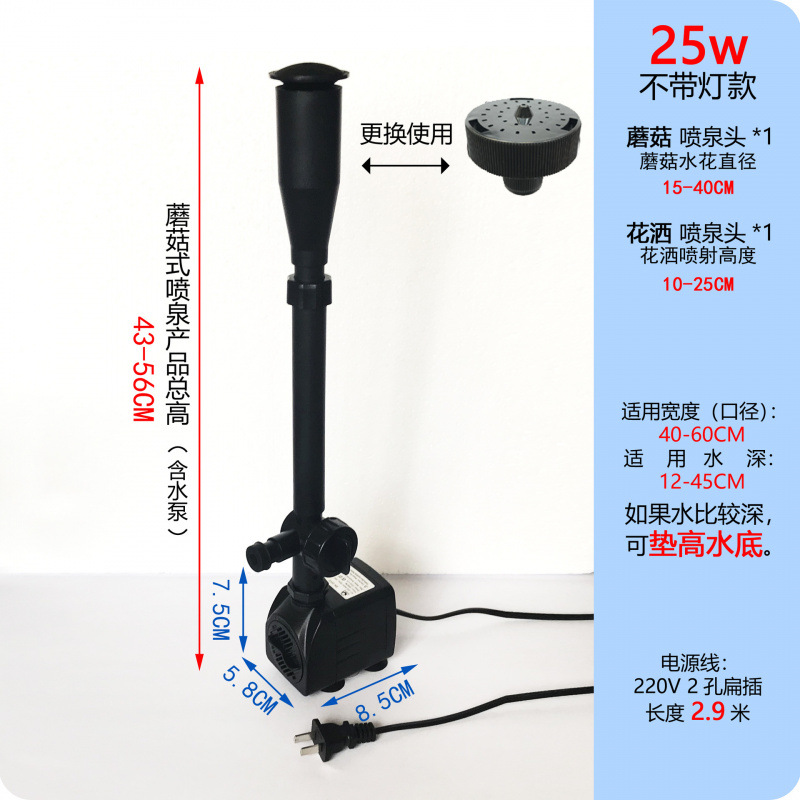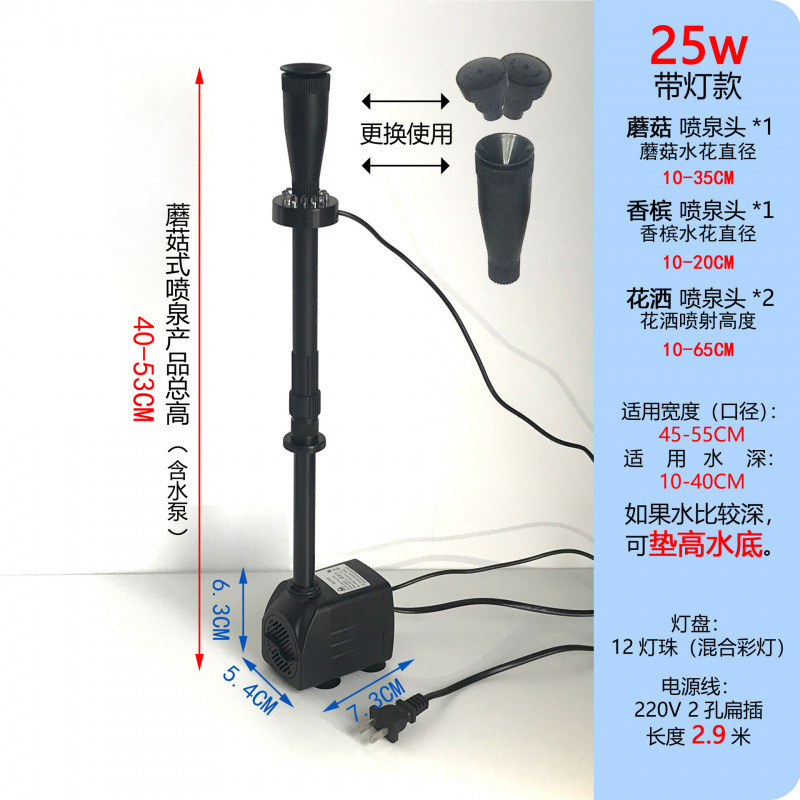 • 25W 워터 펌프(조명 포함) + 스트레치 분수 파이프 커버 소형 + 소형 램프 링 - 높이 40- 53cm