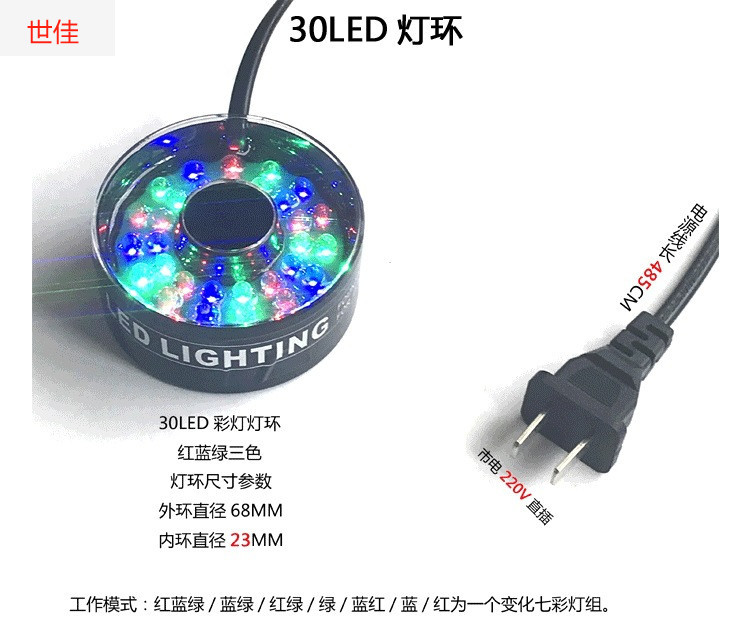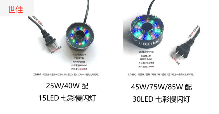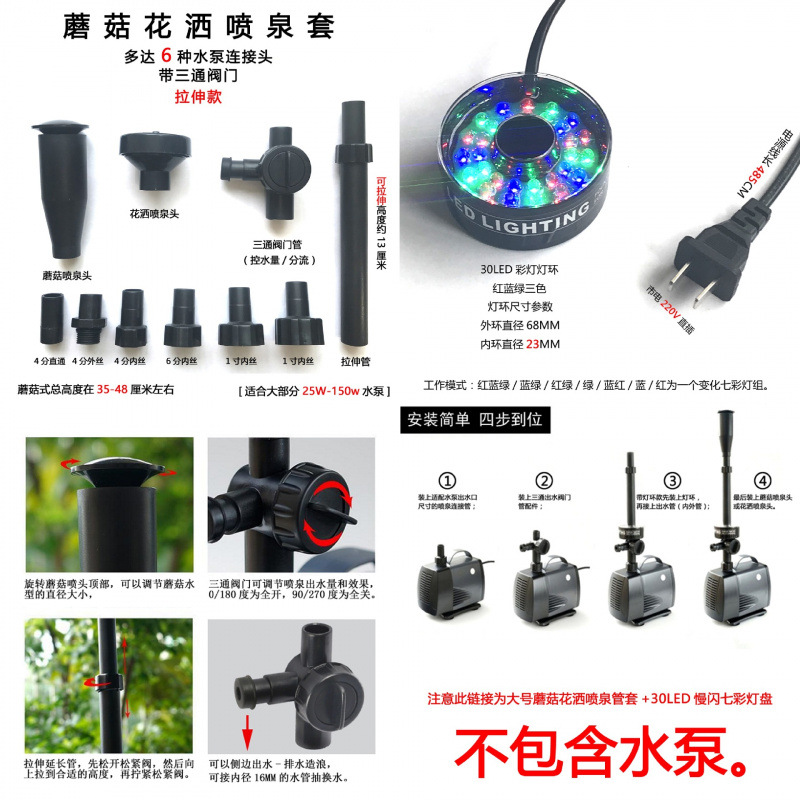 • 워터 펌프가 없는 대형 스트레치 분수 파이프 슬리브 + 30LED 조명 헤드라이트 링