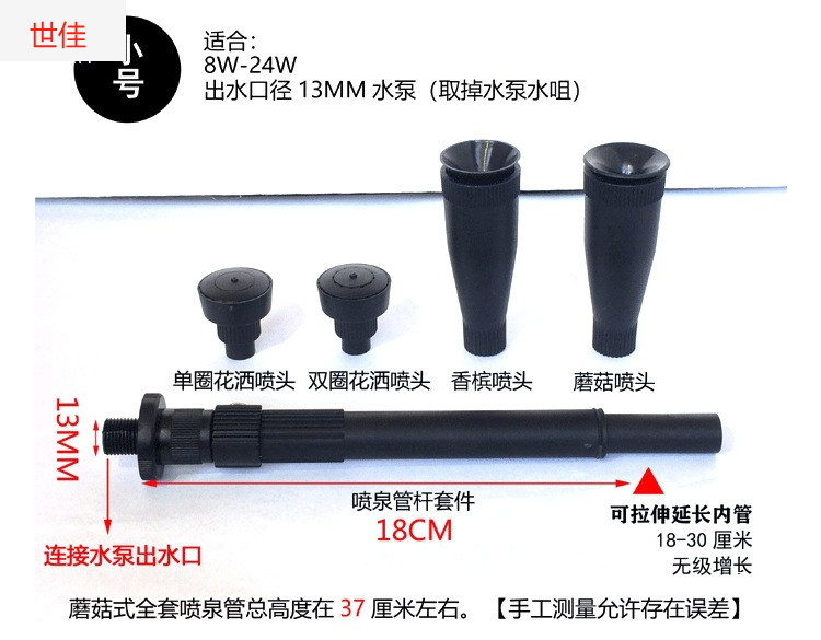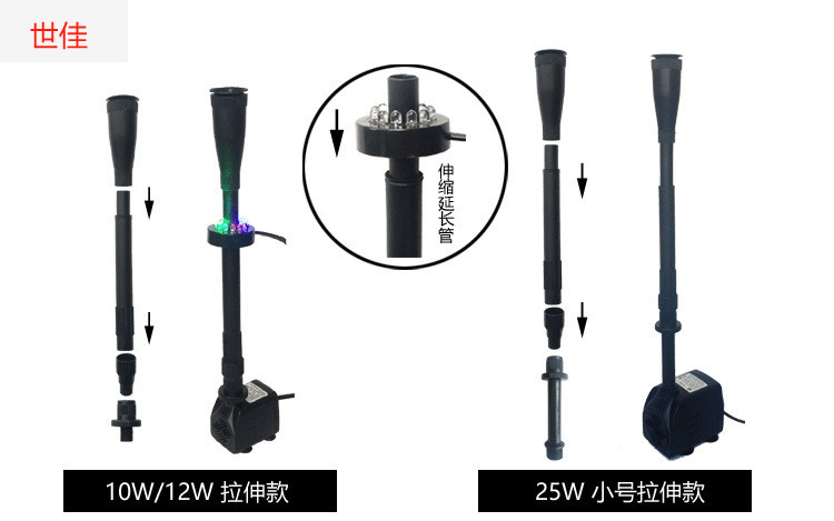 • 10W 워터 펌프 + 스트레치 분수 파이프 슬리브 소형 - 높이 29- 42cm