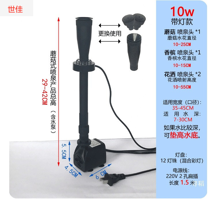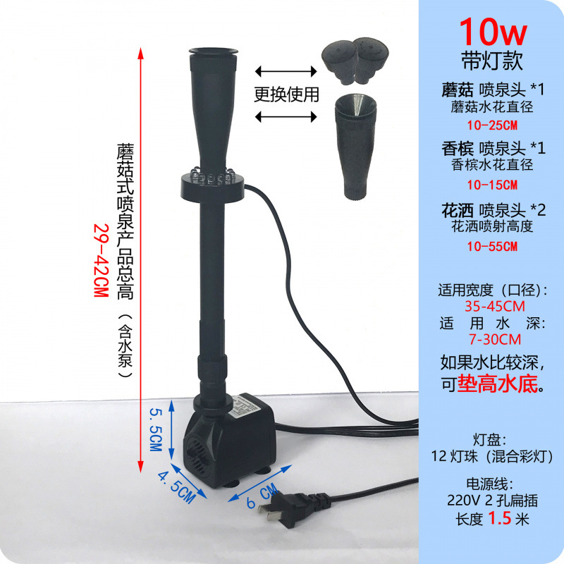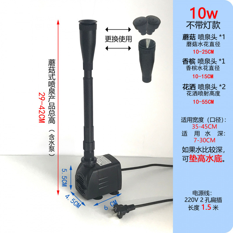 • 10W 워터 펌프 + 스트레치 분수 파이프 커버 소형 + 소형 램프 링 - 높이 29- 42cm