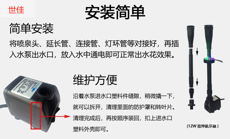 • 12W 워터 펌프 + 스트레치 분수 파이프 슬리브 소형 - 높이 30- 43cm