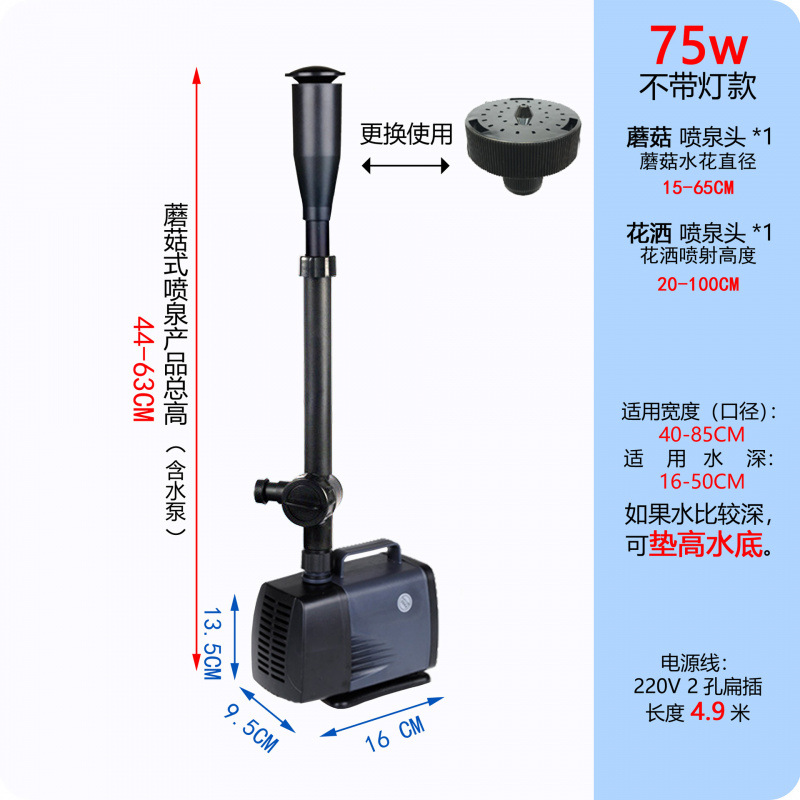 • 75W 워터 펌프 + 스트레치 분수 파이프 슬리브 대형 - 높이 44- 63cm