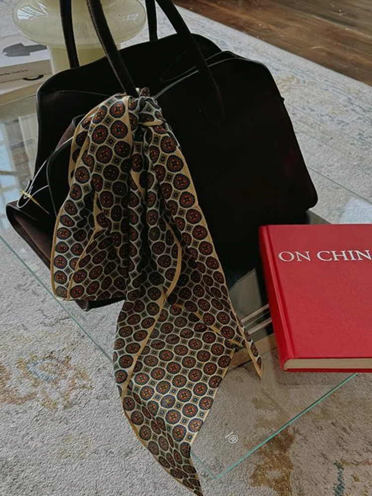 빈티지 올드 머니 스타일 기하학적 실크 스카프 프랑스 스타일 하이 엔드 유행 우아한 긴 스카프 인스 타 그램 스타일 헤어 밴드 액세서리 여성