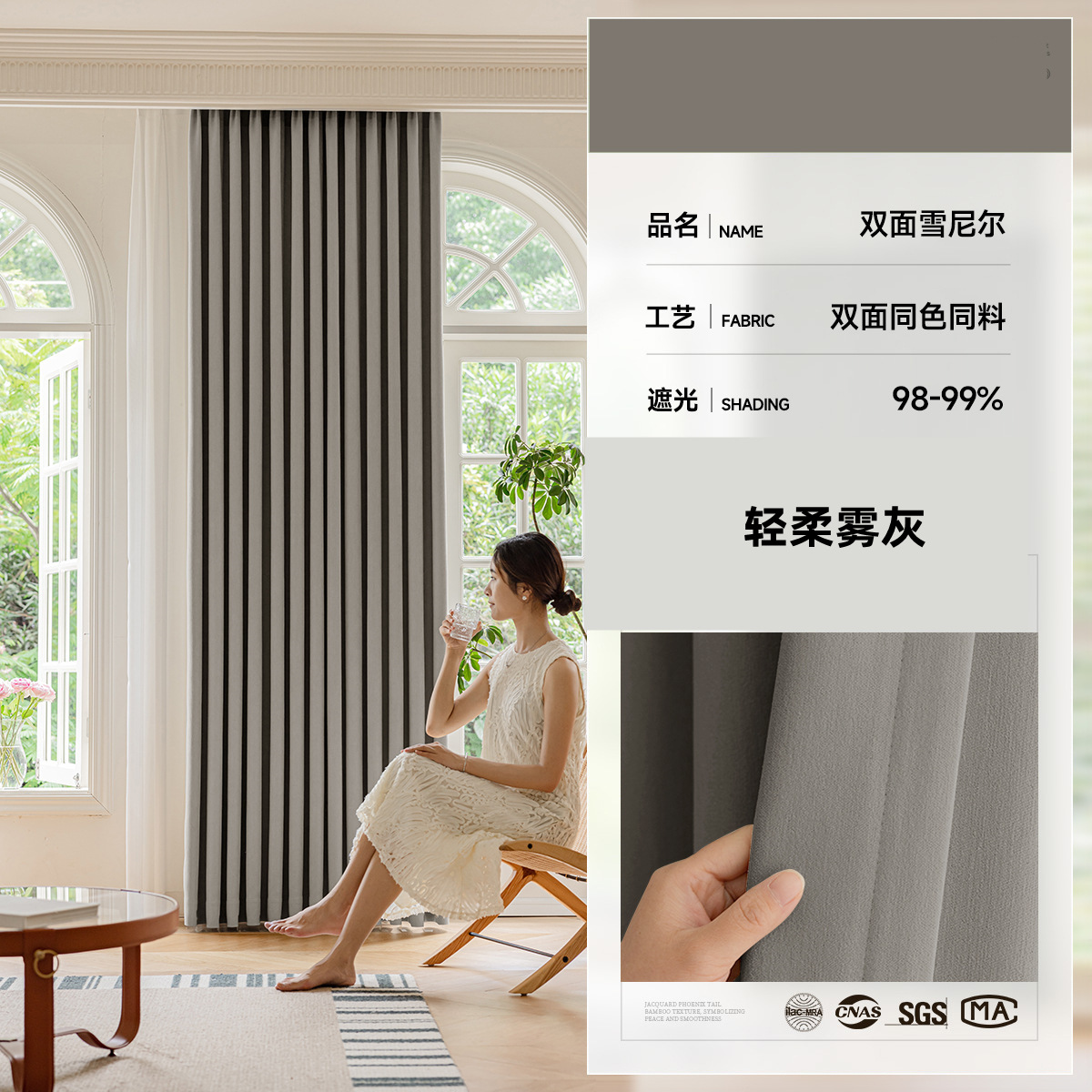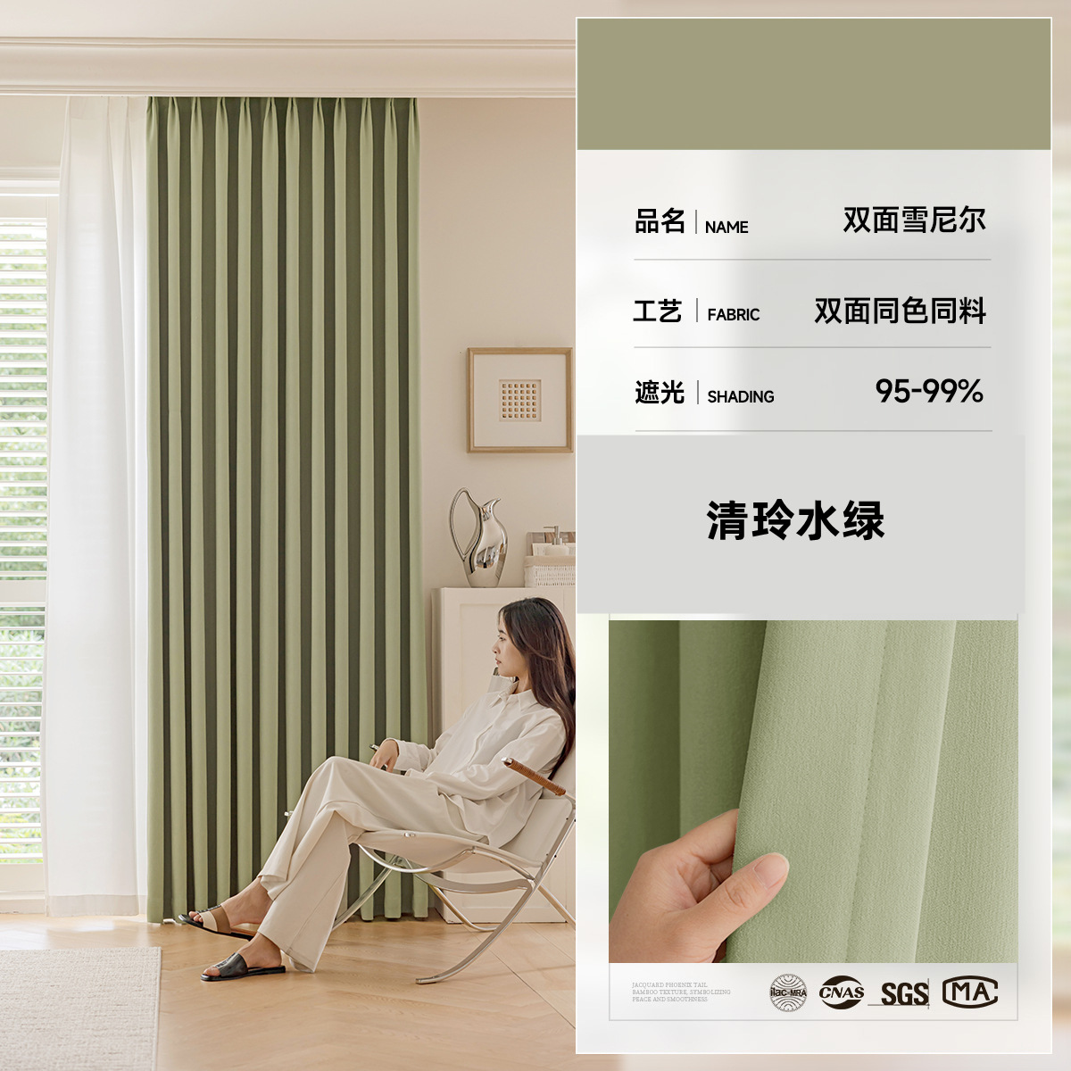 양면 셔닐 커튼, 완전 암막, 실크 벨벳, 면 및 린넨, 거실 및 침실, 한국식 주름, 현대식 심플 유럽형 플로어 창