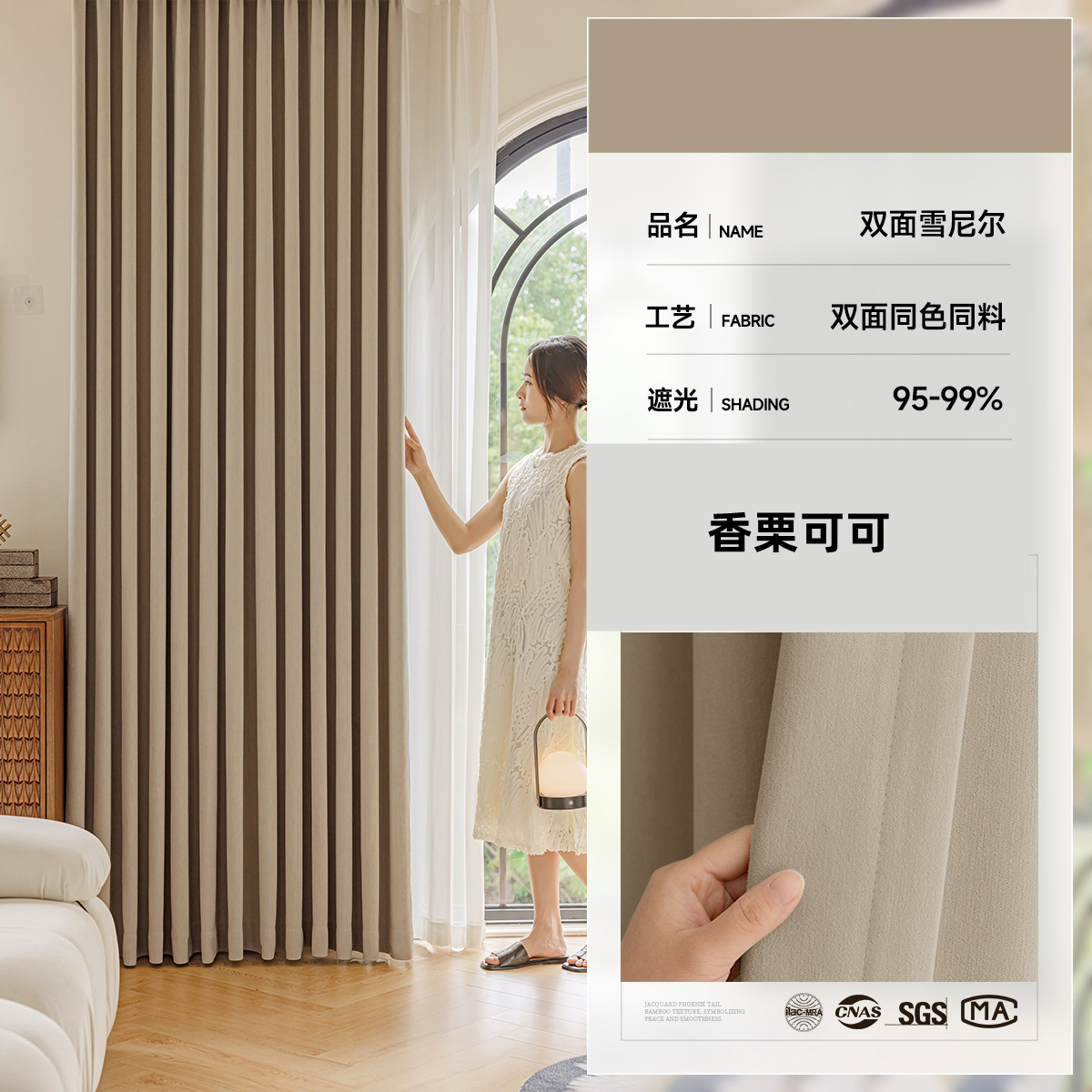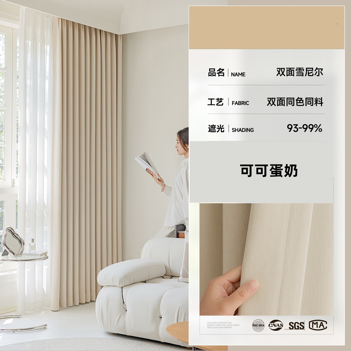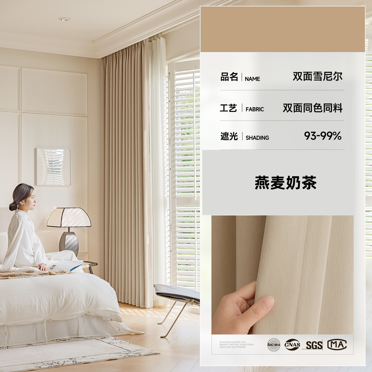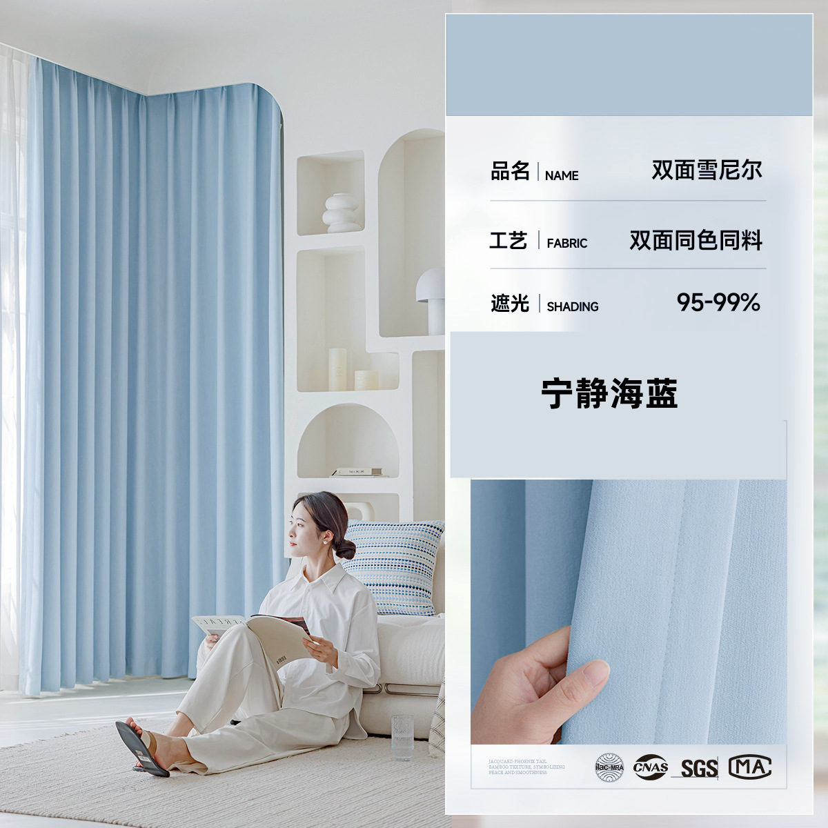 양면 셔닐 커튼, 완전 암막, 실크 벨벳, 면 및 린넨, 거실 및 침실, 한국식 주름, 현대식 심플 유럽형 플로어 창스토어 가기