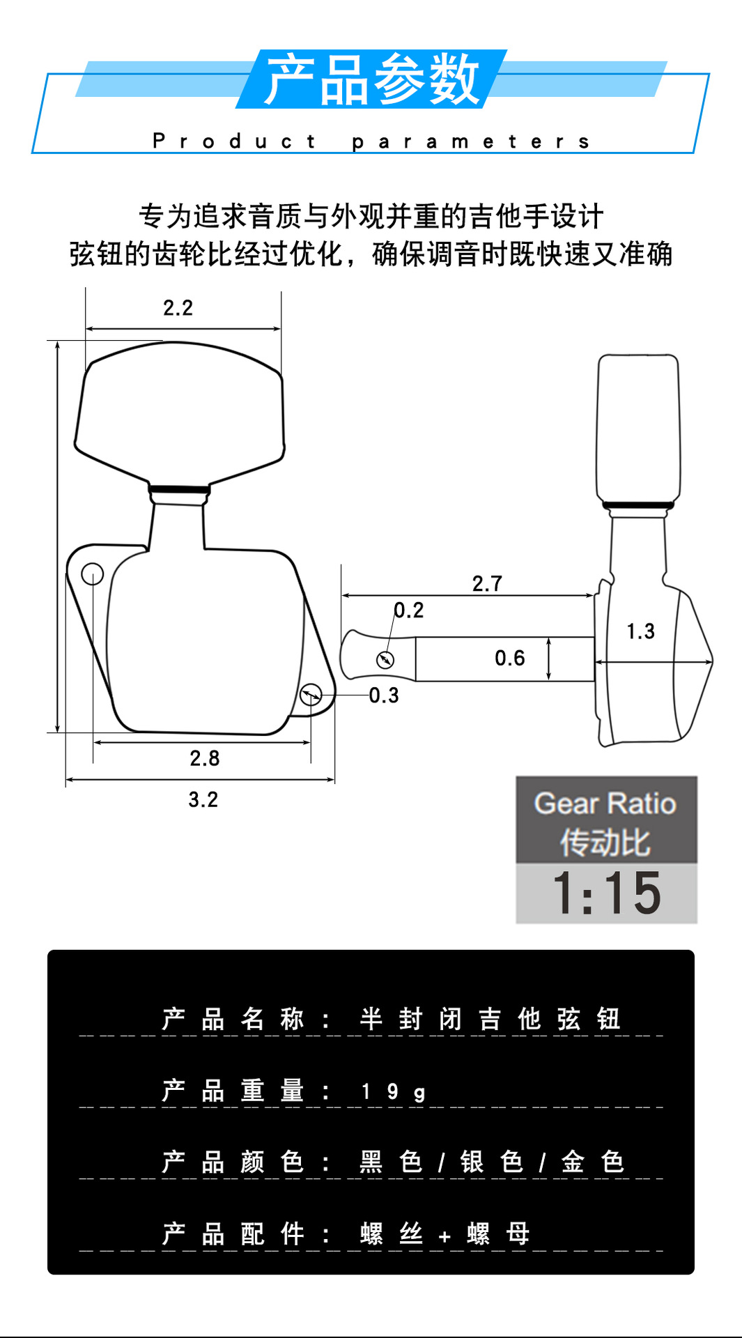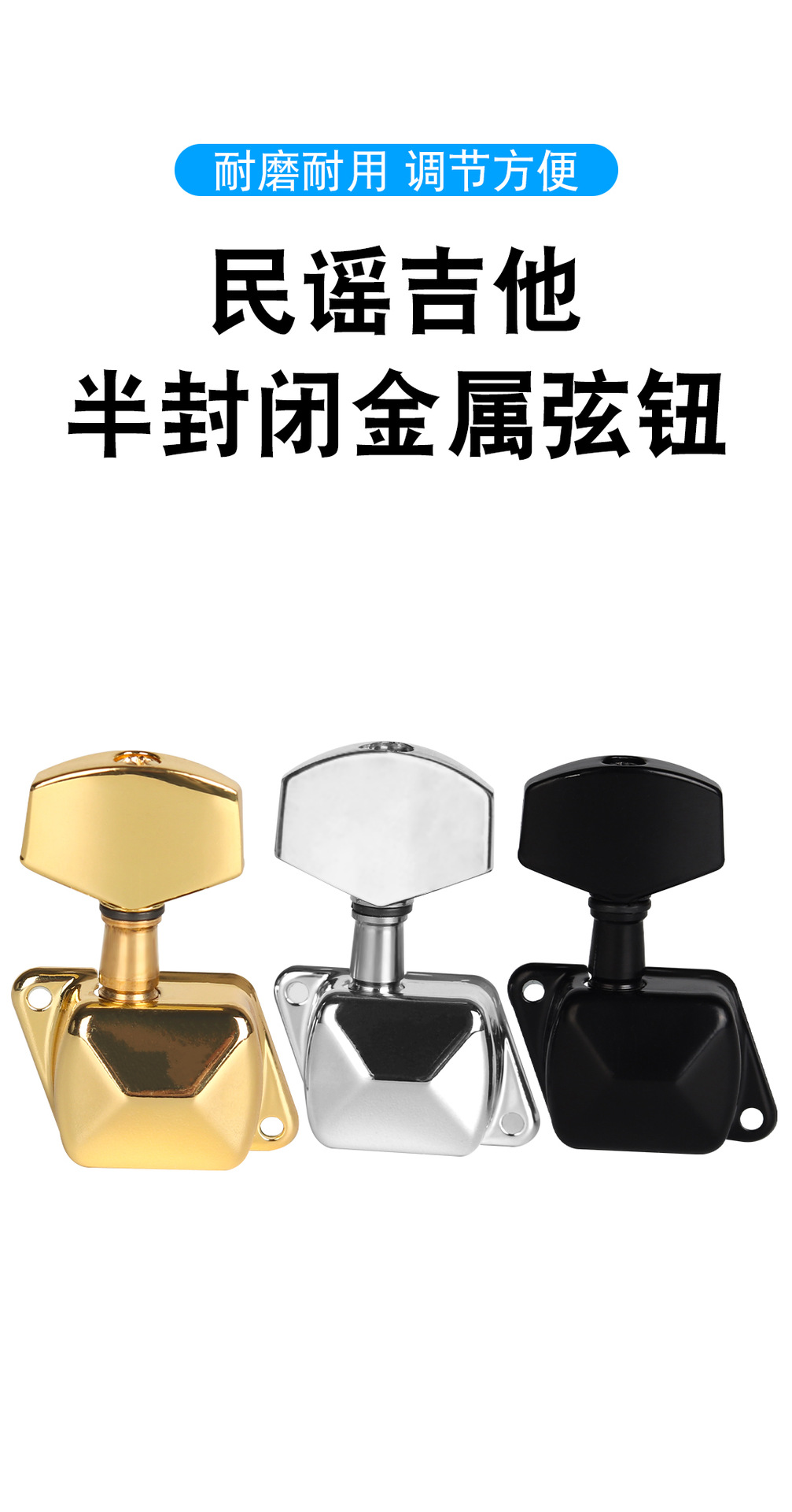포크 기타 문자열 노브 노브 피벗 실버 블랙 골드 나무 기타 문자열 와인딩 손잡이 절반 폐쇄 트위스트 손잡이