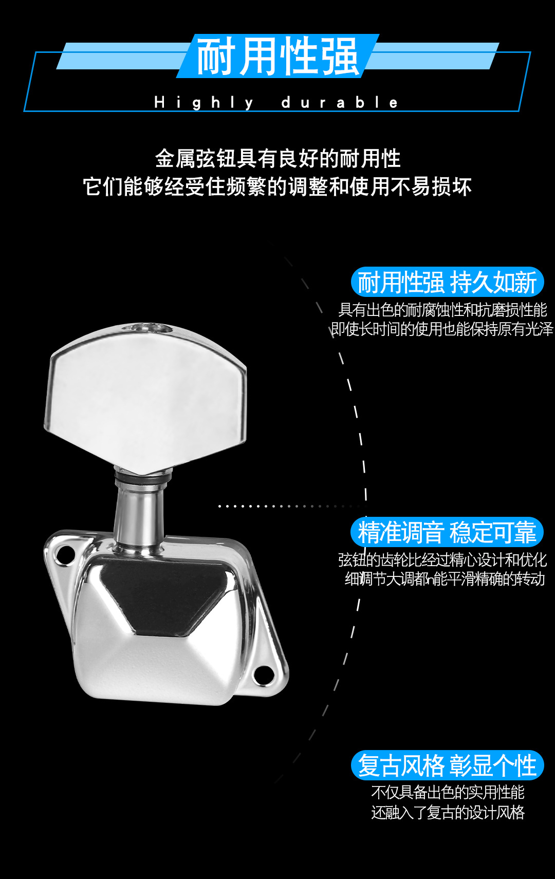포크 기타 문자열 노브 노브 피벗 실버 블랙 골드 나무 기타 문자열 와인딩 손잡이 절반 폐쇄 트위스트 손잡이스토어 가기