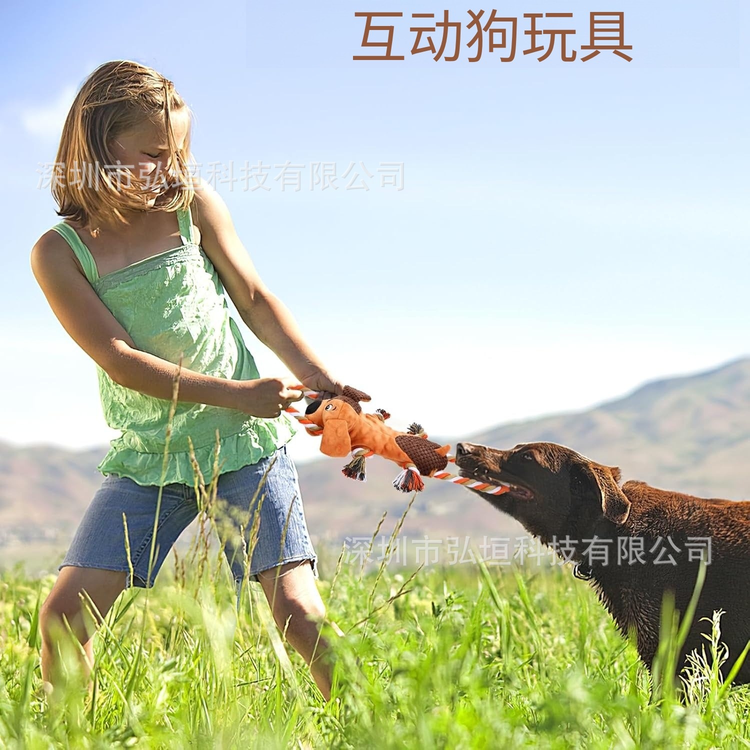 아마존 개 대화형 플러시 장난감, 물림 방지, 어금니 소리 장난감, 면 로프 애완 동물 장난감, 치아 청소 개 장난감