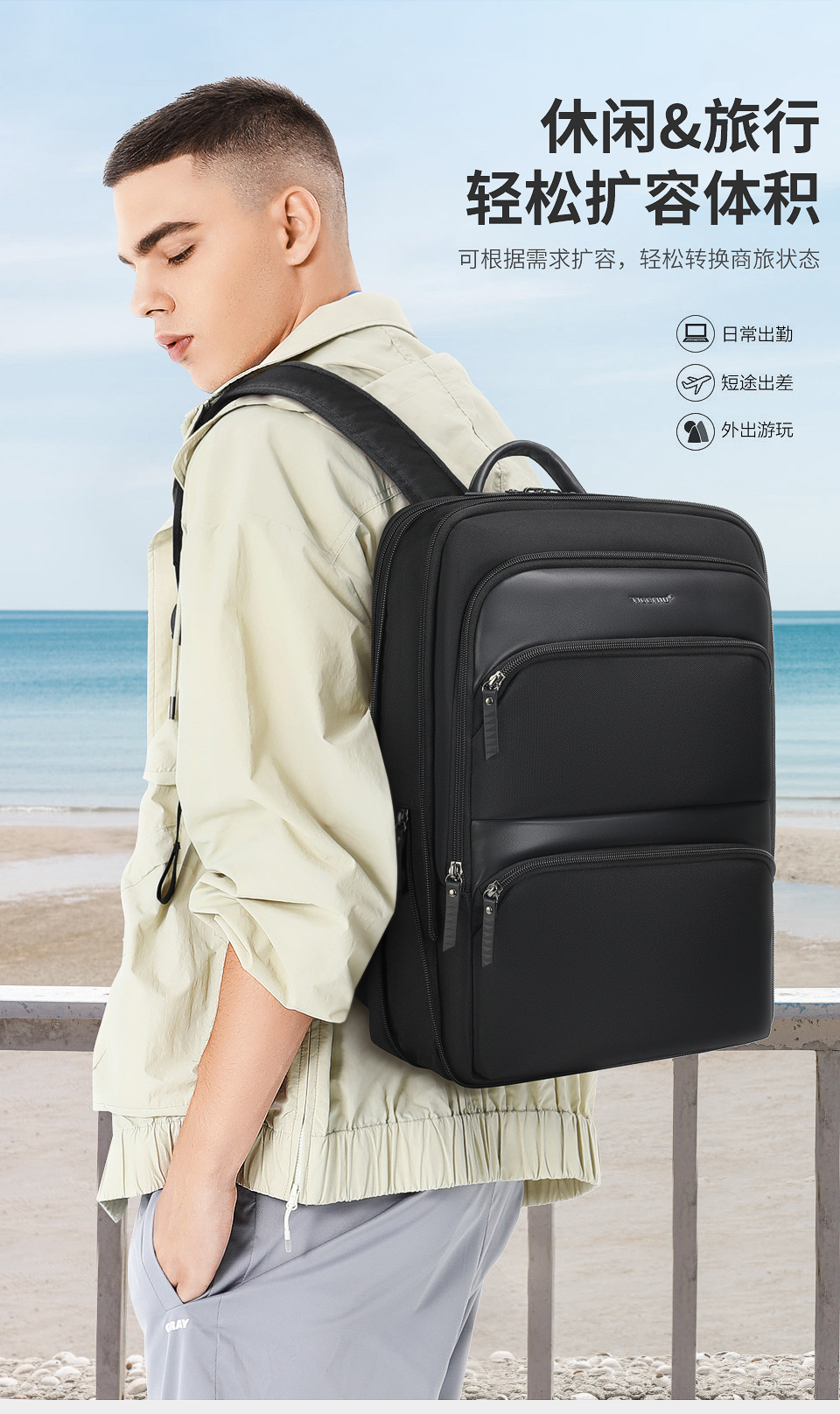 트렌디 한 새로운 남성 스포츠 배낭 남성 통근 대용량 배낭 경량 방수 학교 가방 다기능 컴퓨터스토어 가기