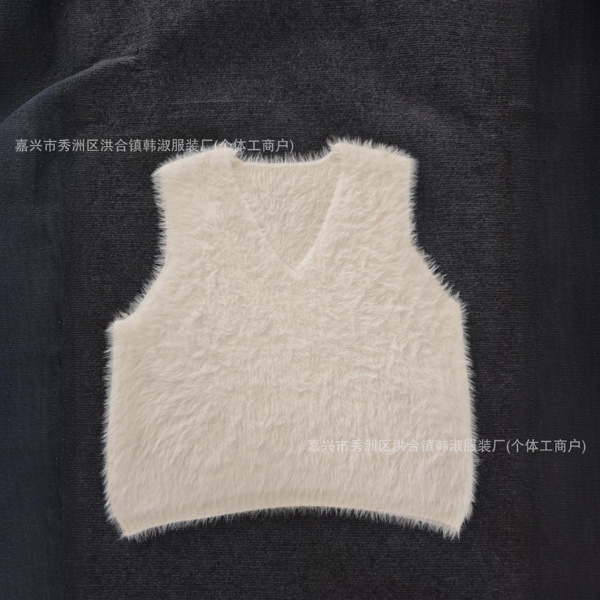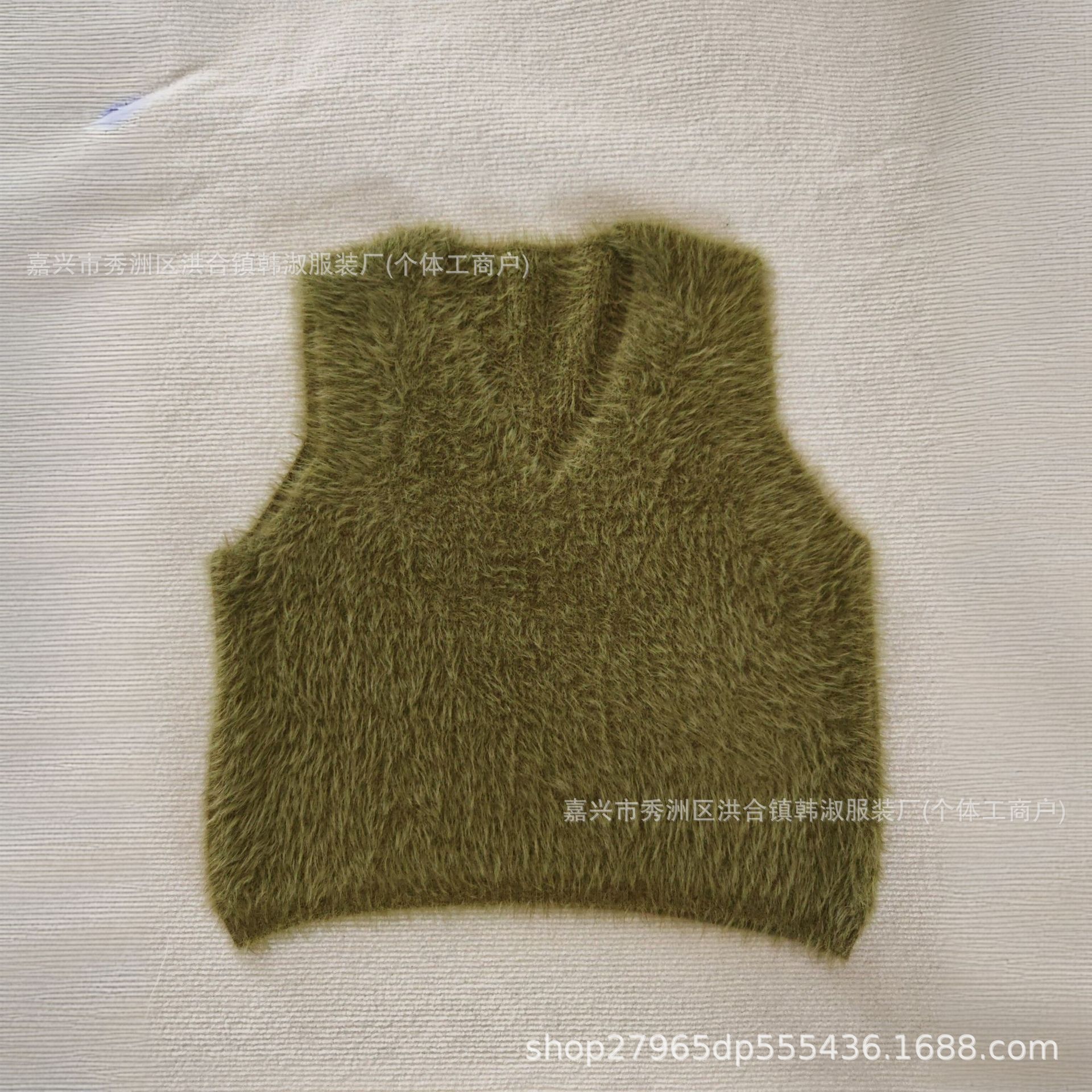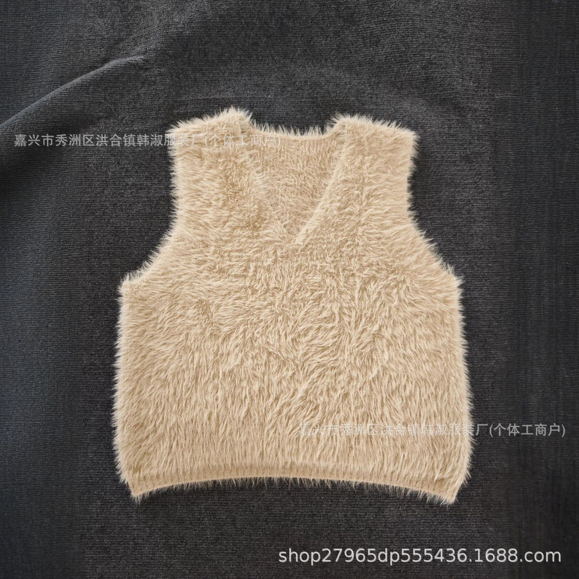 가을 겨울 여성용 모조 밍크 벨벳 브이넥 조끼 니트 조끼 솔리드 컬러 풀오버 민소매 패션 아우터 스웨터 조끼스토어 가기