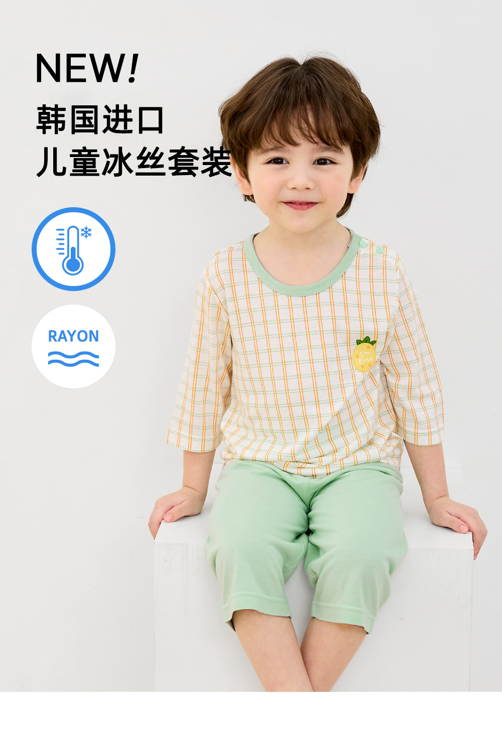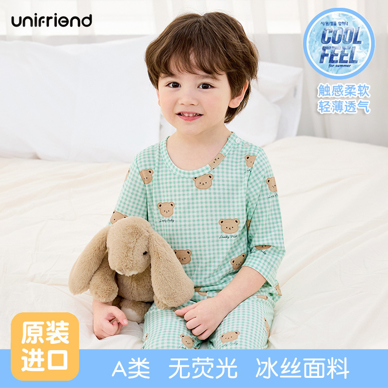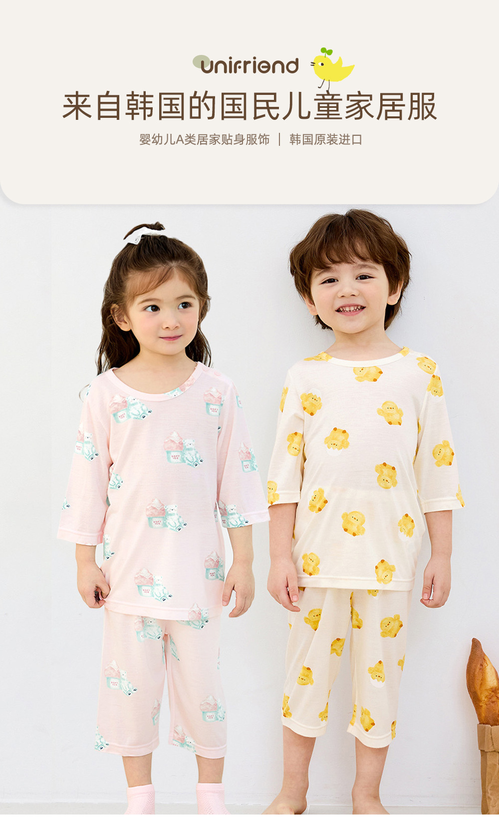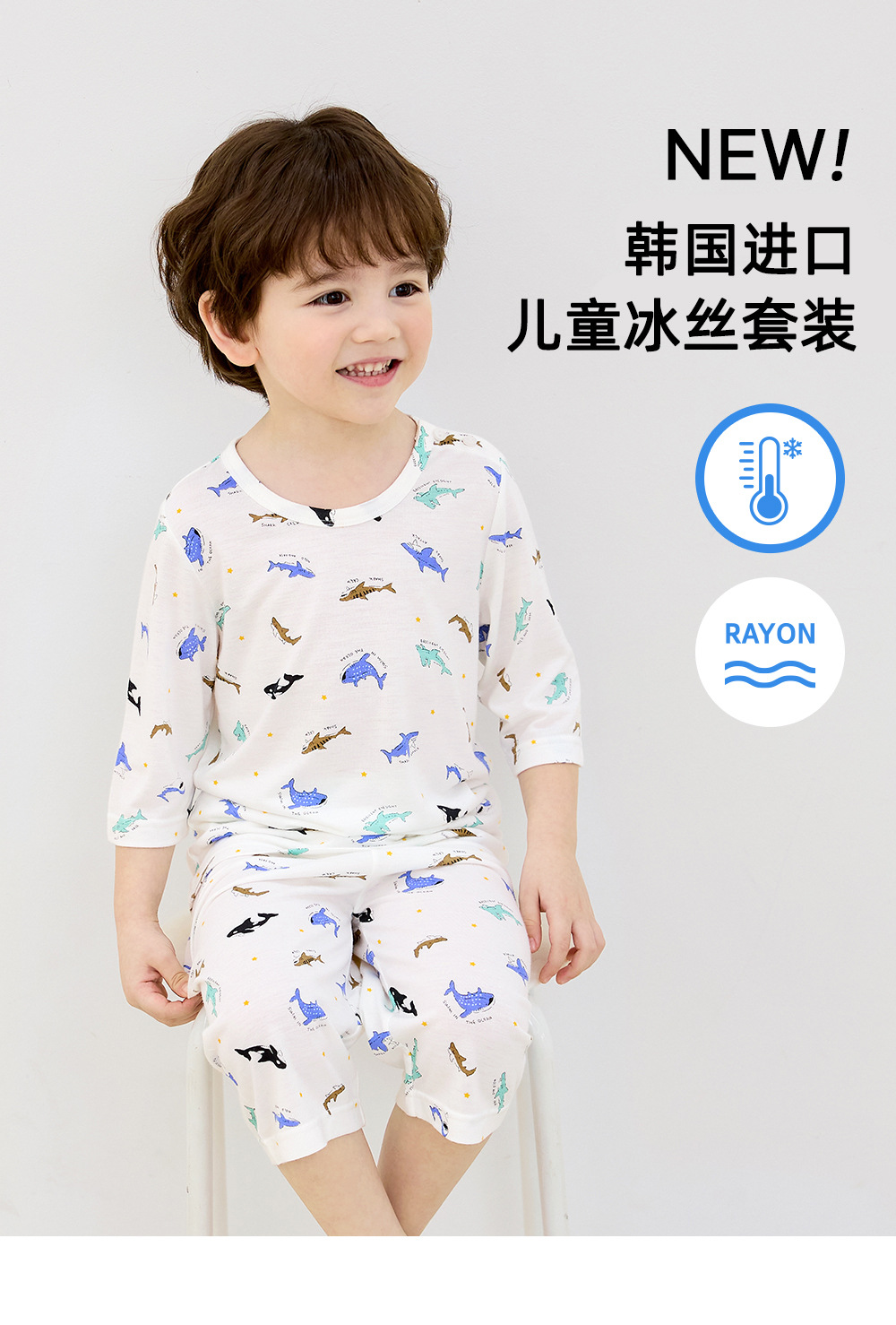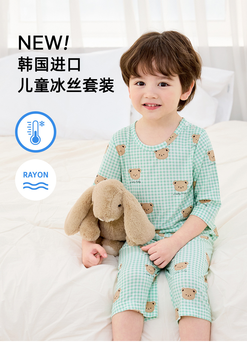 여름 새 어린이 집 옷 소년 7 점 소매 아이스 실크 세트 소녀 잠옷 만화 클래스 A