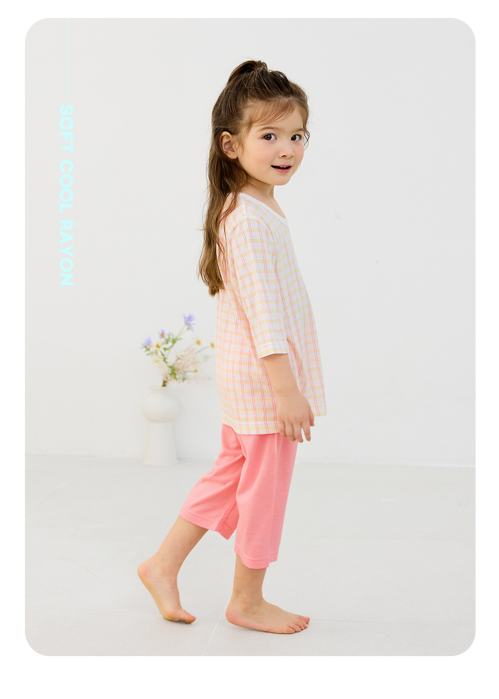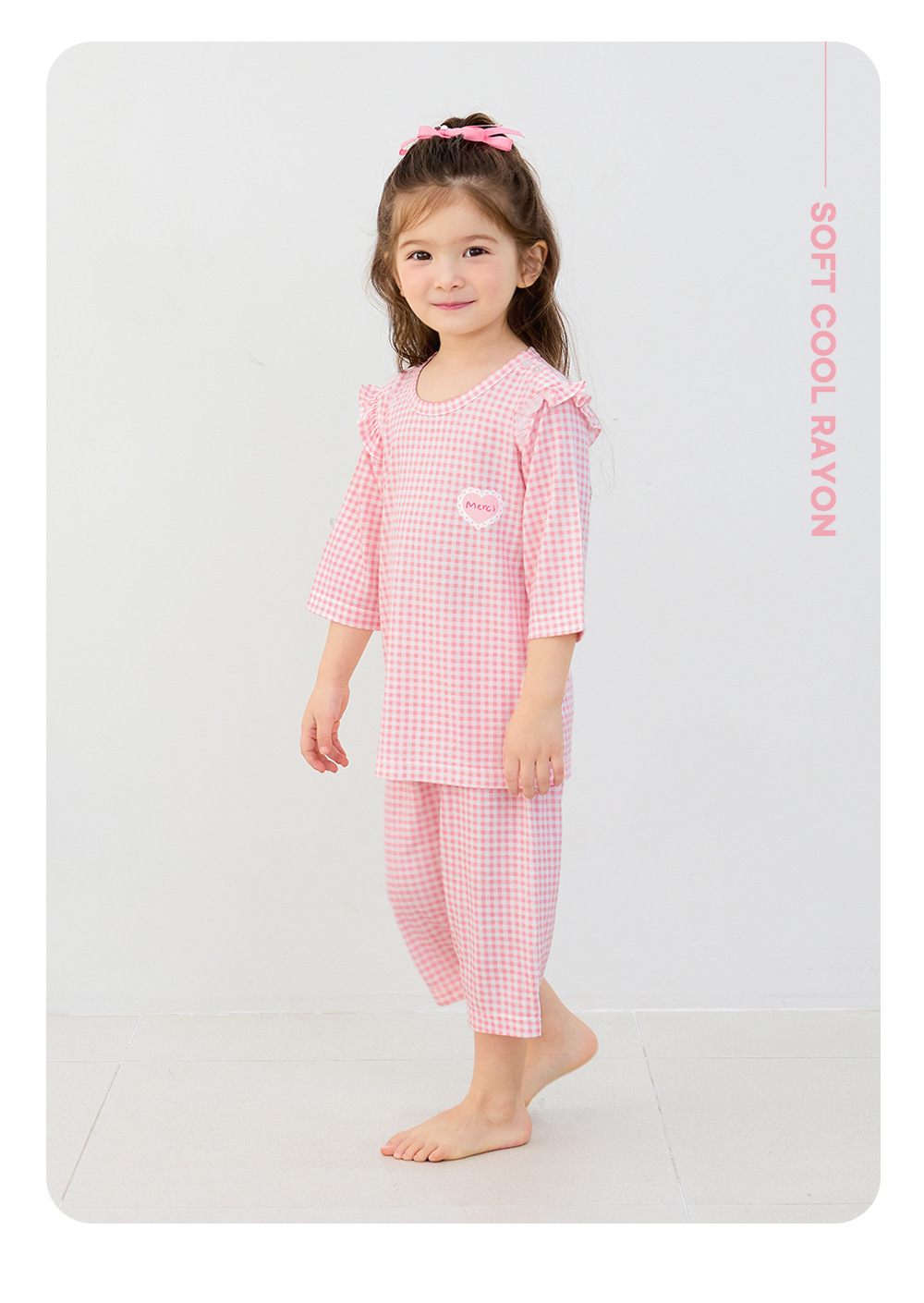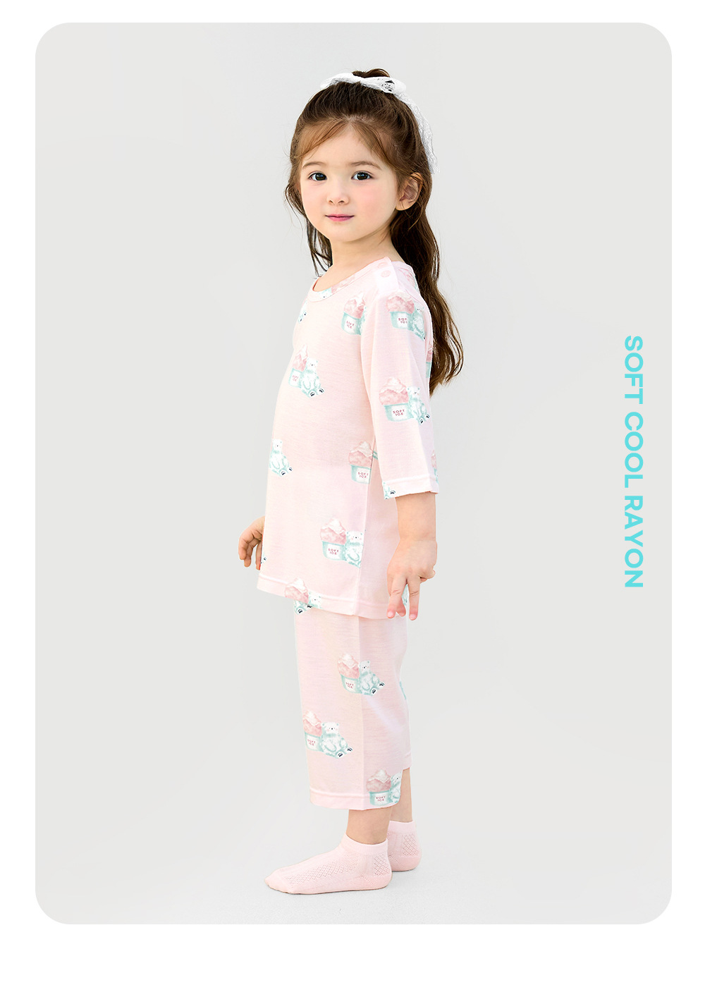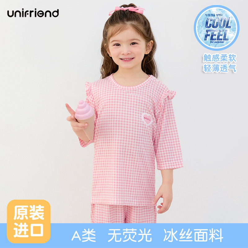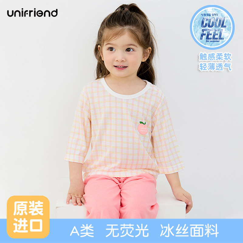 여름 새 어린이 집 옷 소년 7 점 소매 아이스 실크 세트 소녀 잠옷 만화 클래스 A