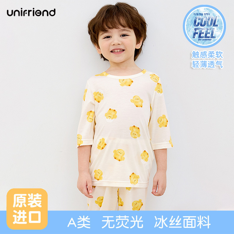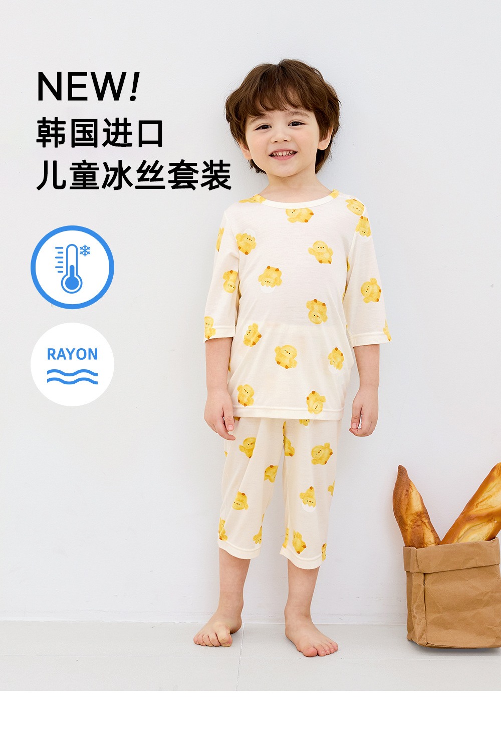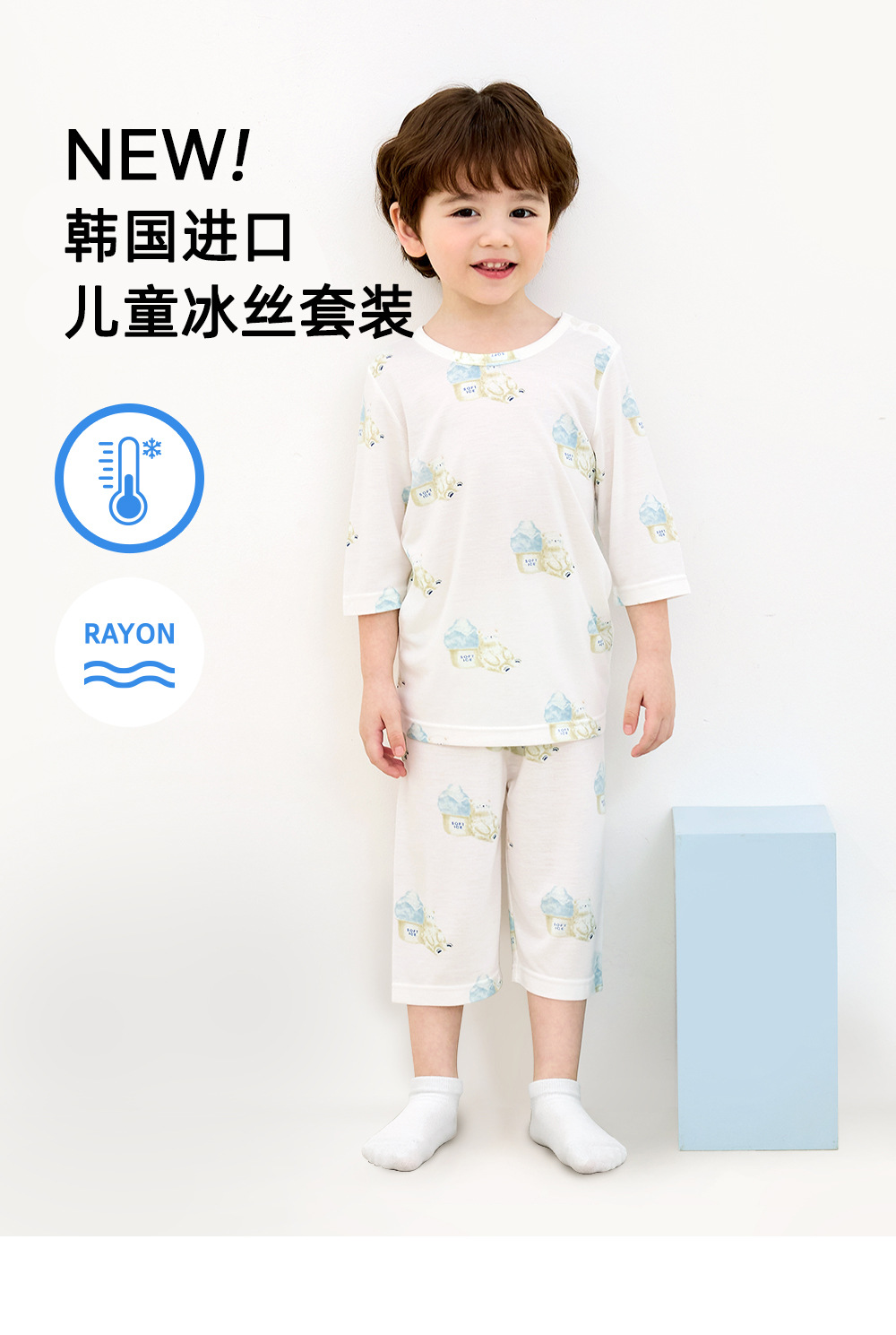 여름 새 어린이 집 옷 소년 7 점 소매 아이스 실크 세트 소녀 잠옷 만화 클래스 A스토어 가기