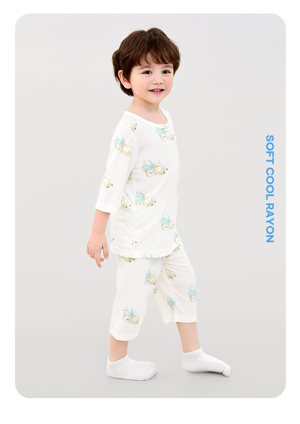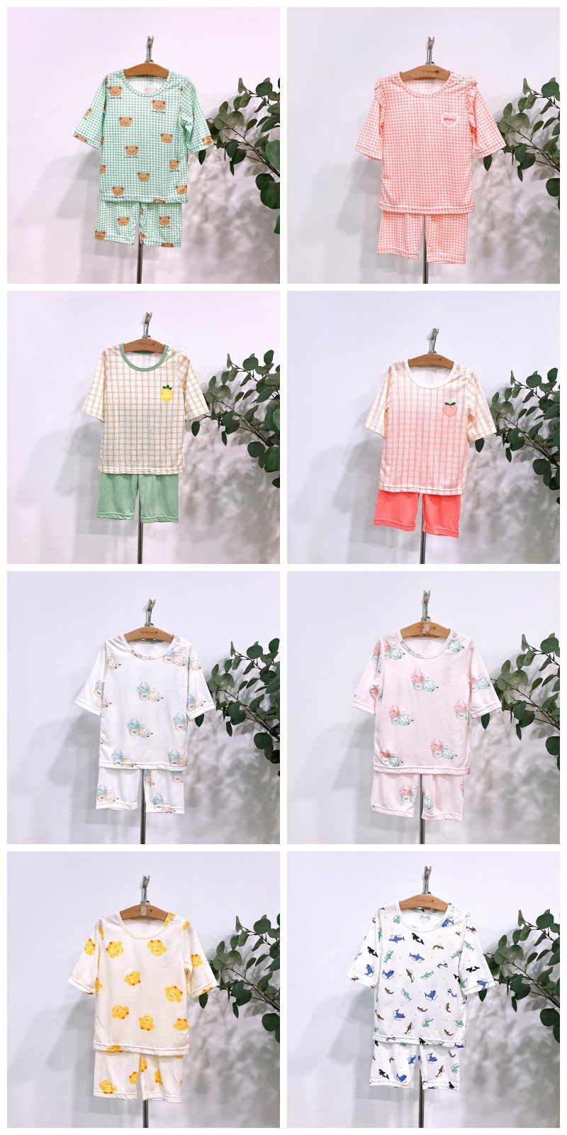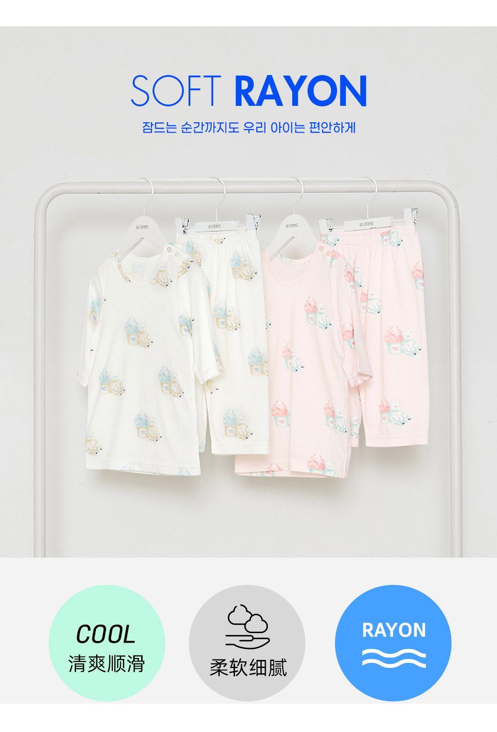 여름 새 어린이 집 옷 소년 7 점 소매 아이스 실크 세트 소녀 잠옷 만화 클래스 A스토어 가기