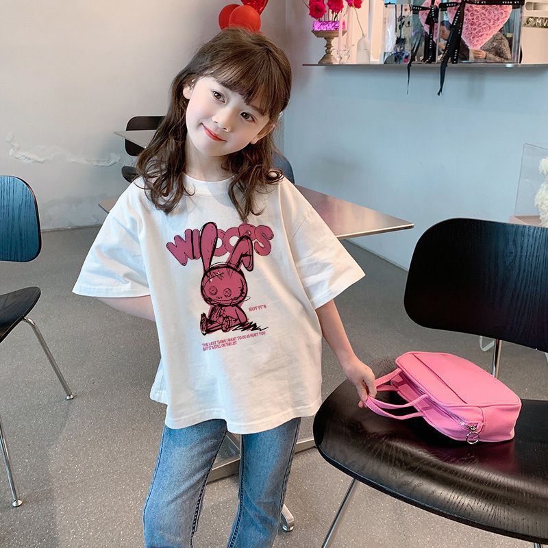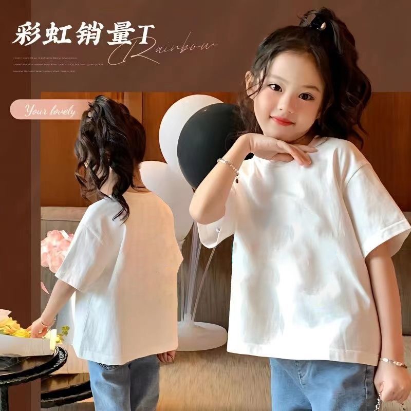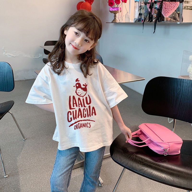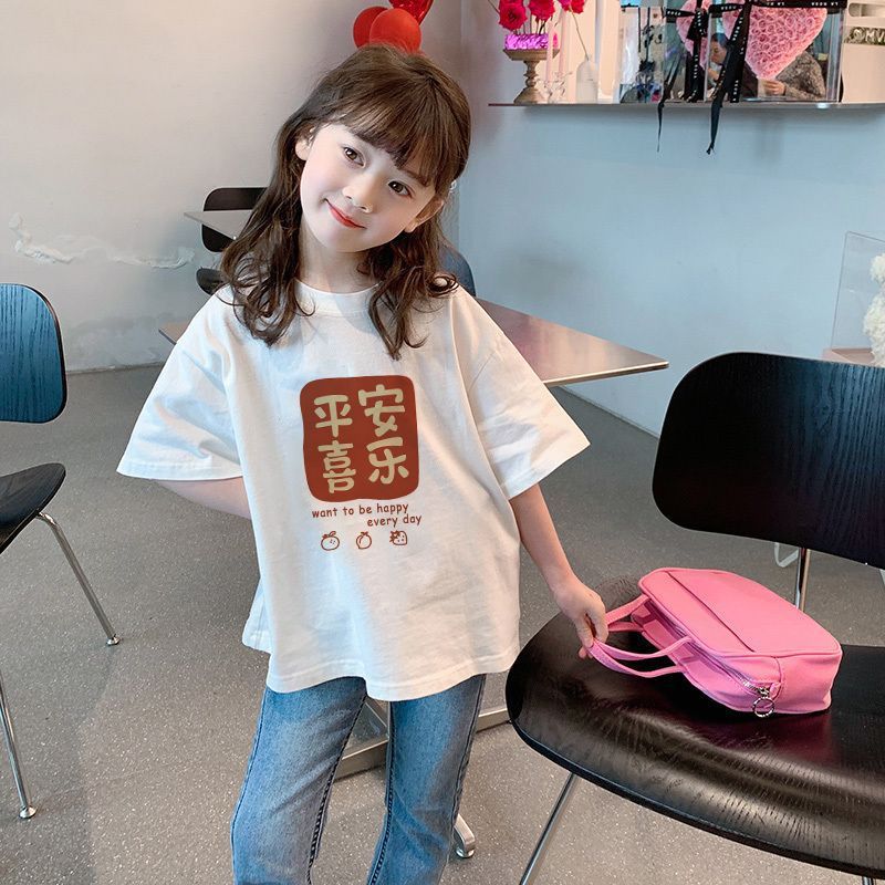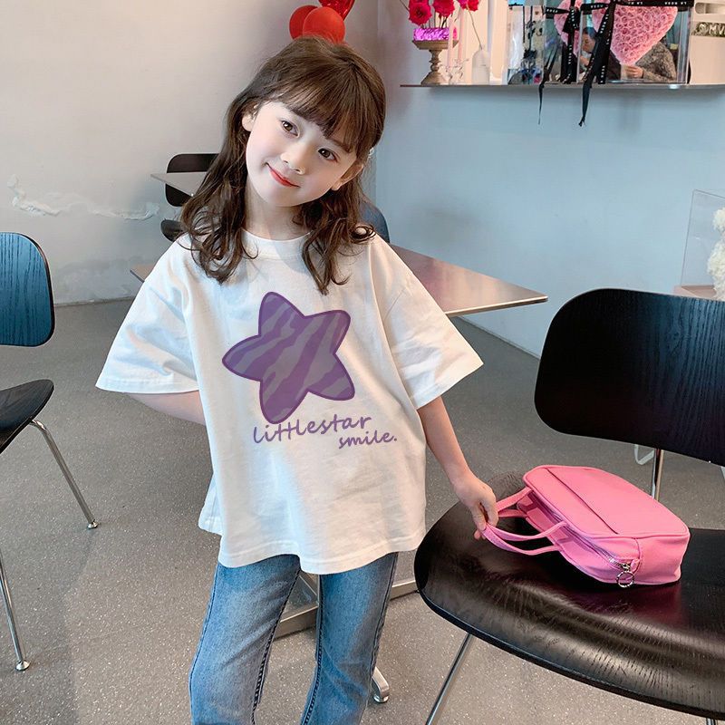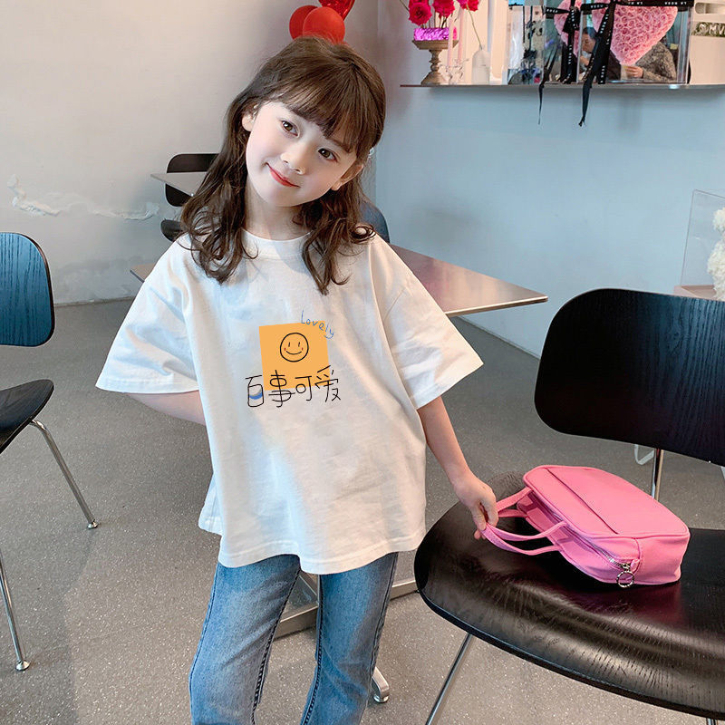 소녀 패션 인쇄 짧은 소매 2025 여름 새로운 스타일 티셔츠 캐주얼 스타일 아기 Instagram 탑베이스스토어 가기