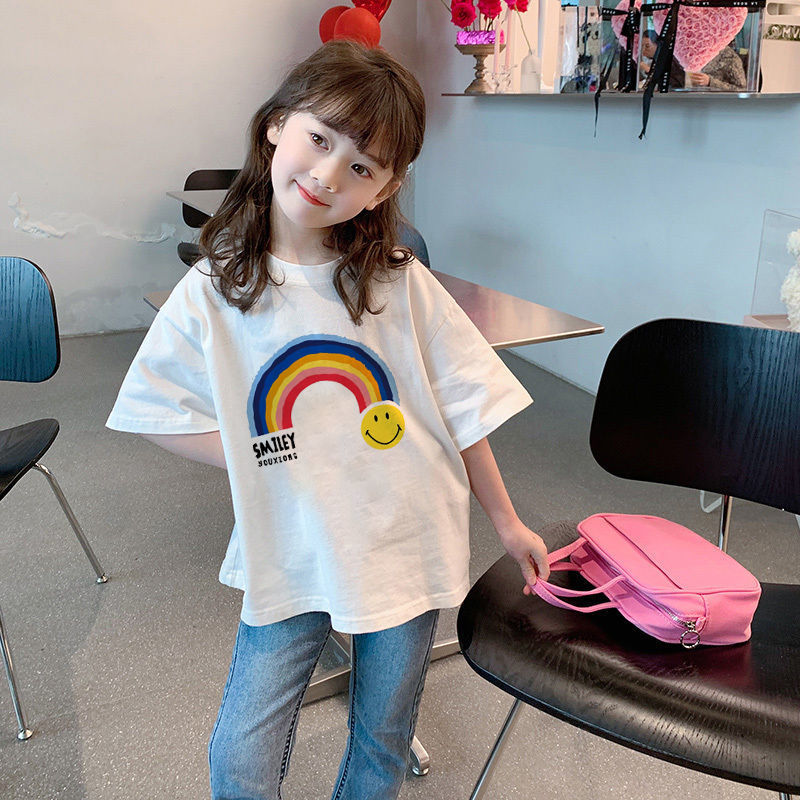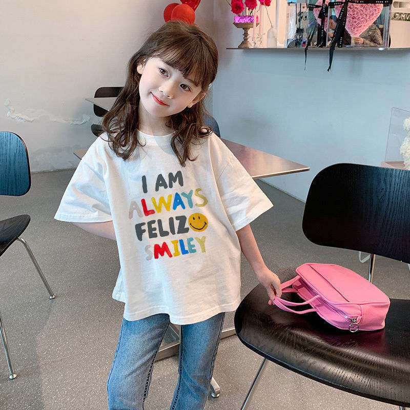 소녀 패션 인쇄 짧은 소매 2025 여름 새로운 스타일 티셔츠 캐주얼 스타일 아기 Instagram 탑베이스