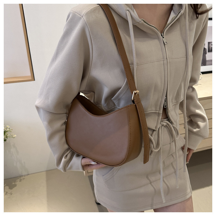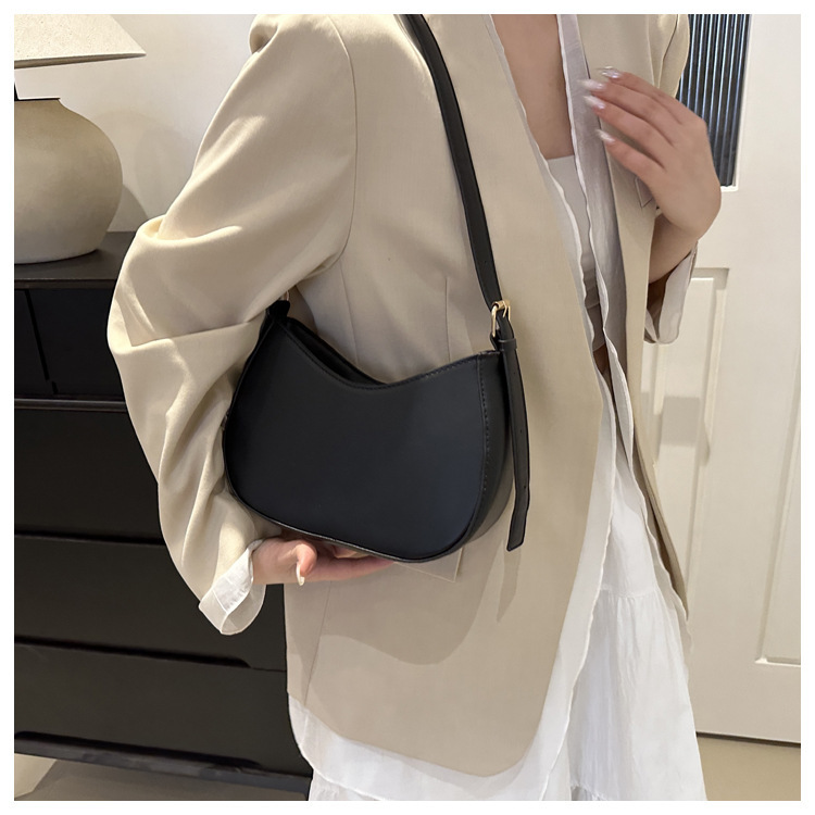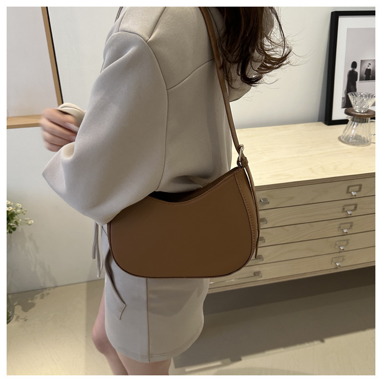 여성용 솔리드 컬러 텍스처 숄더백 여성용 2024 봄 여름 다용도 겨드랑이 가방 한국 스타일 외국 스타일 여성용 가방 복고풍스토어 가기