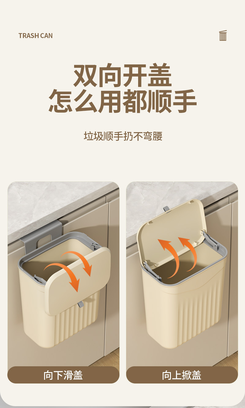 쓰레기통 가정용 고급 감각 화장실 주방 거실 원활한 스티커 링 플립 커버 벽걸이 욕실 쓰레기통