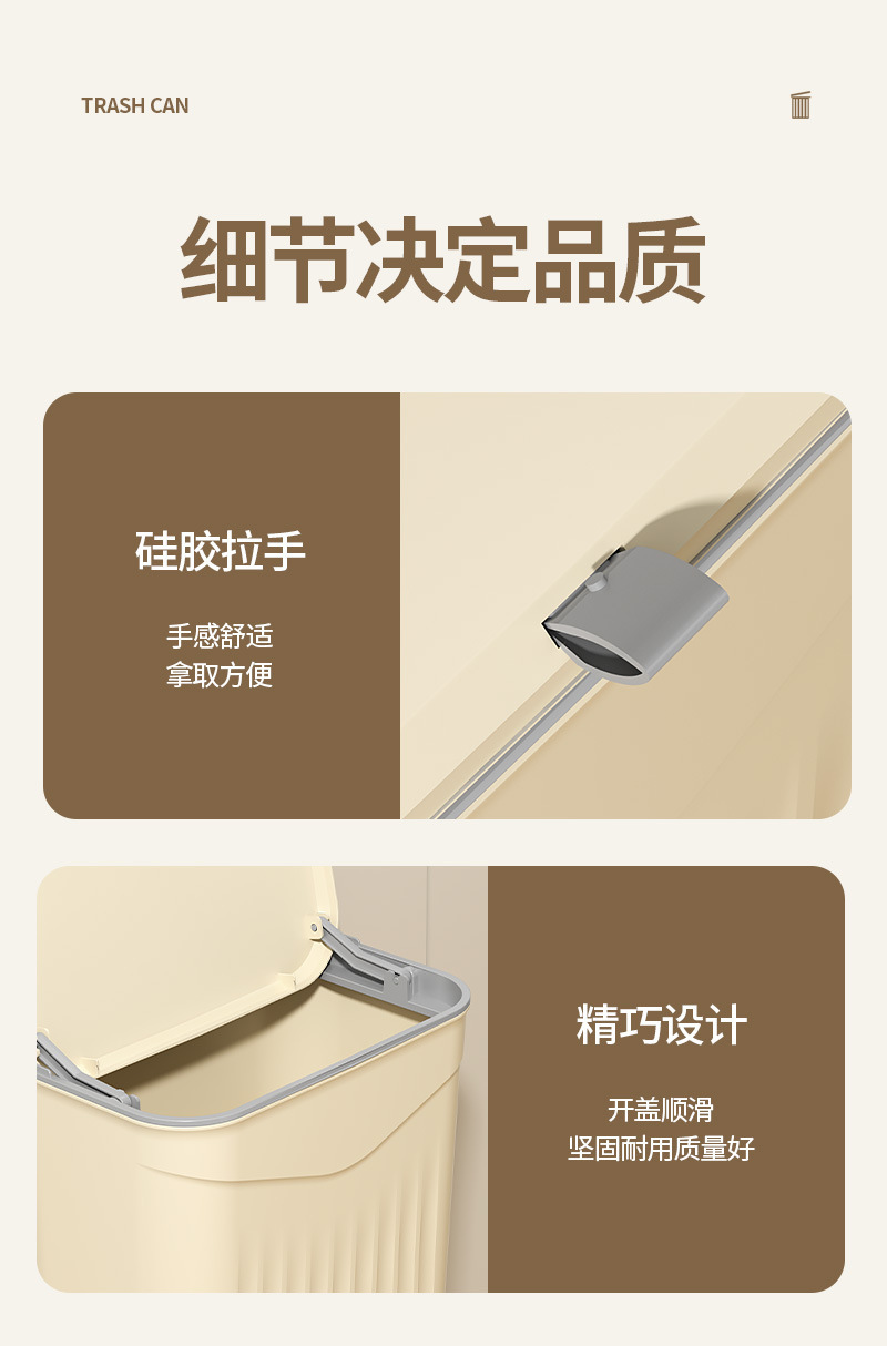 쓰레기통 가정용 고급 감각 화장실 주방 거실 원활한 스티커 링 플립 커버 벽걸이 욕실 쓰레기통스토어 가기