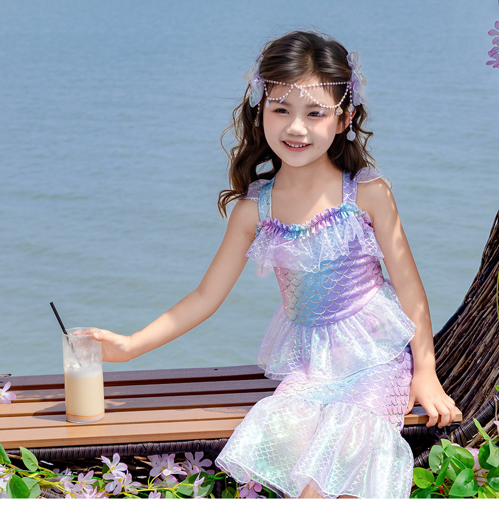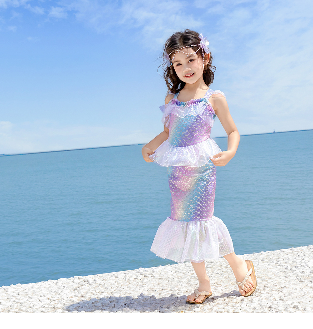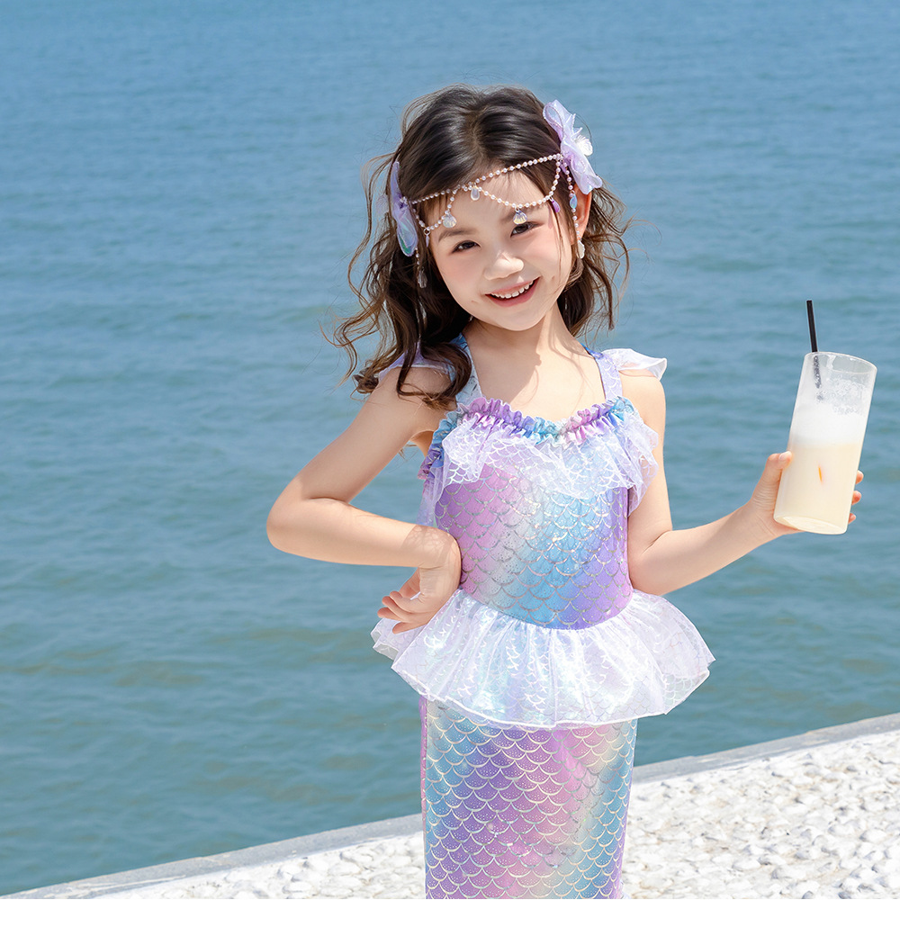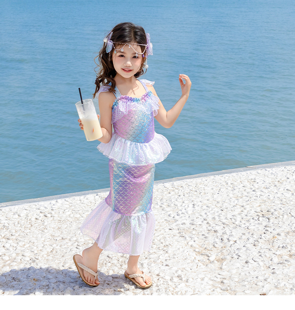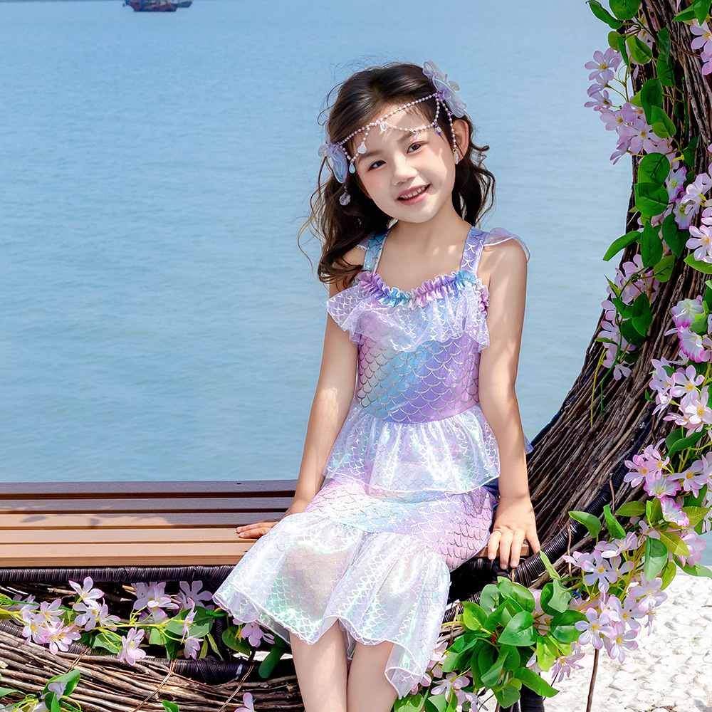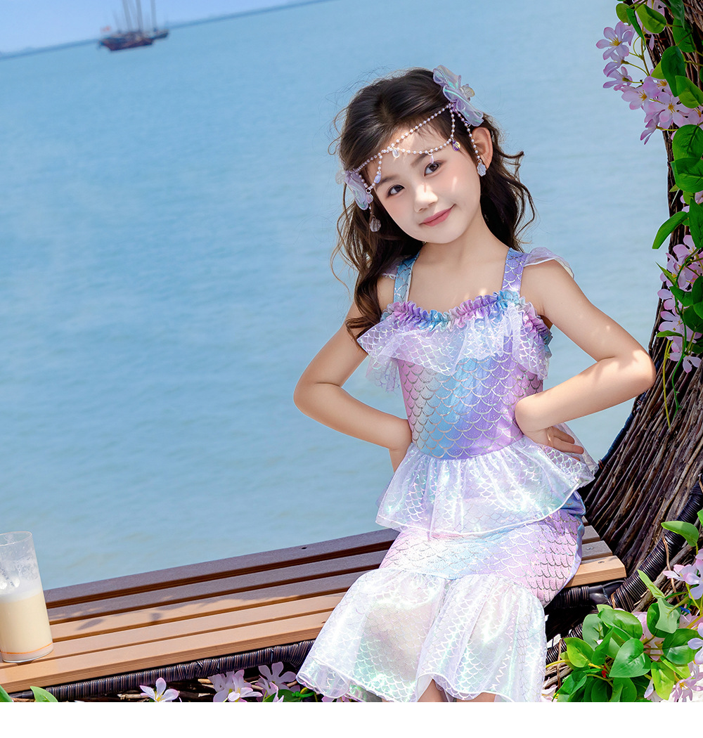 새로운 인어 의류 소녀 수영 옷 소녀 비키니 어린이 공주 세트 공주 4 종 세트