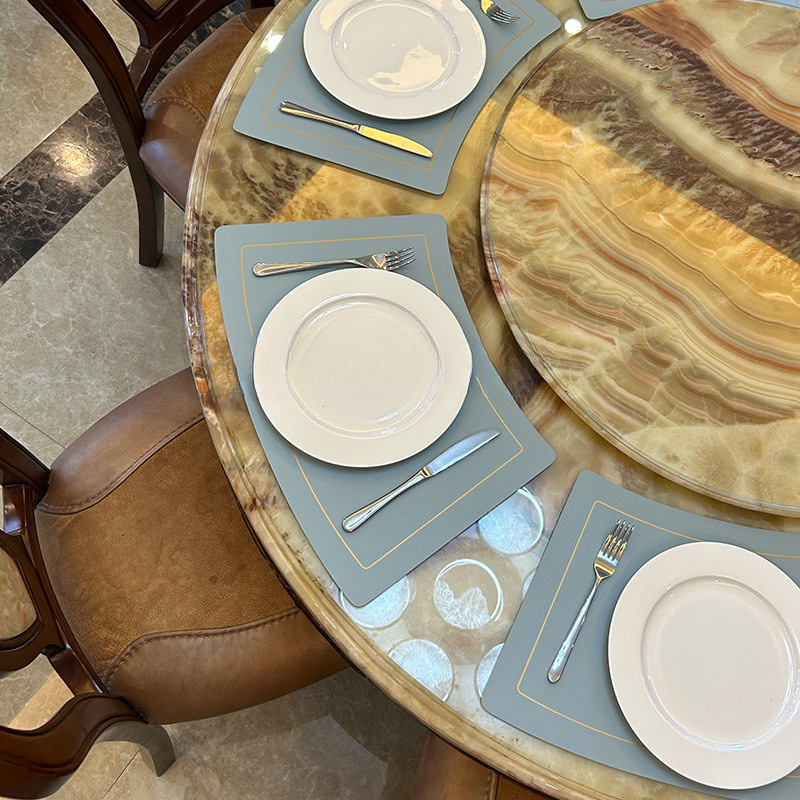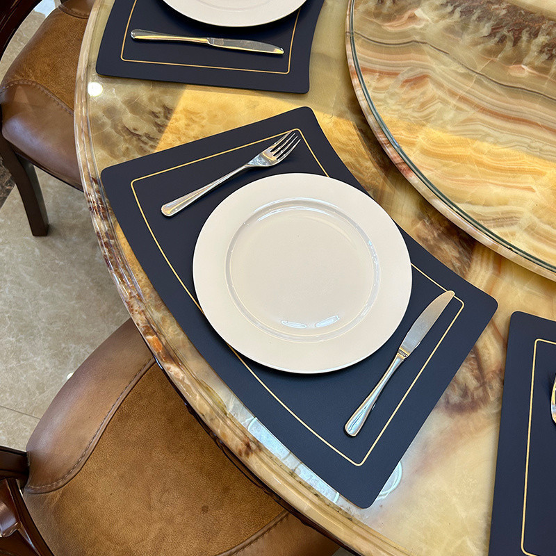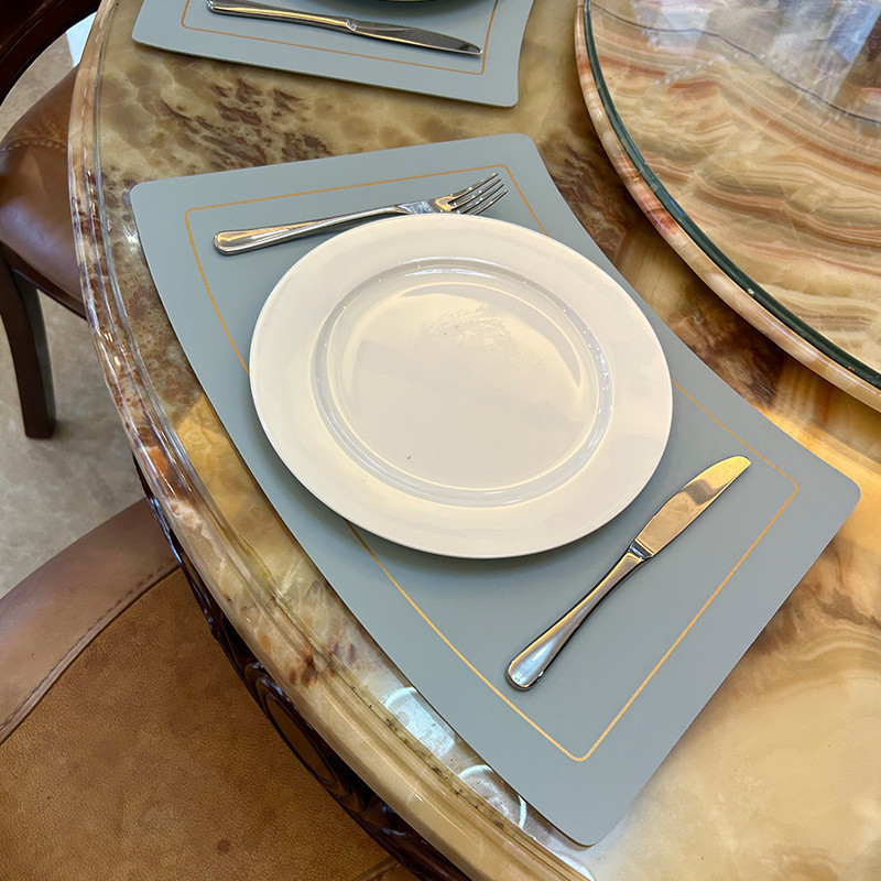 라운드 테이블 부채꼴 플레이스 매트 단열 매트 식탁 화상 방지 가정용 방수 및 내유성 가벼운 고급 가죽 디자인 플레이트 매트