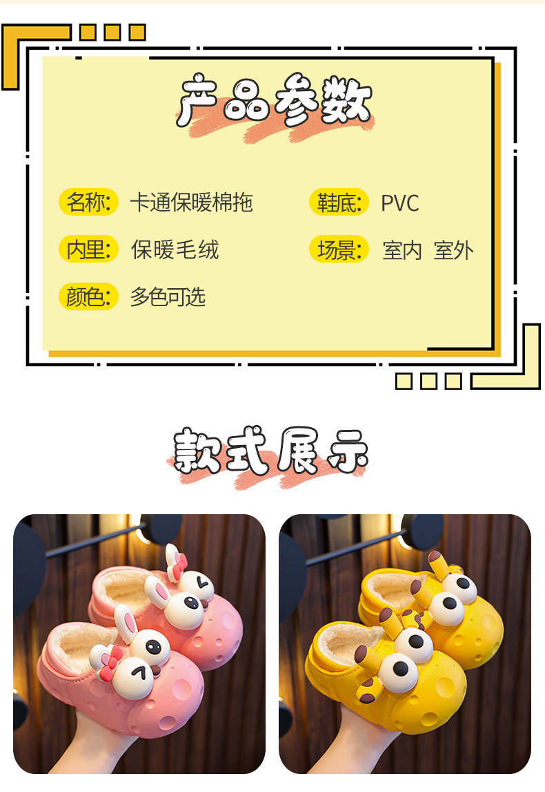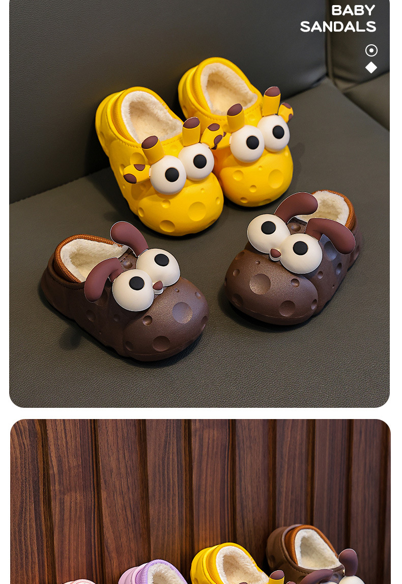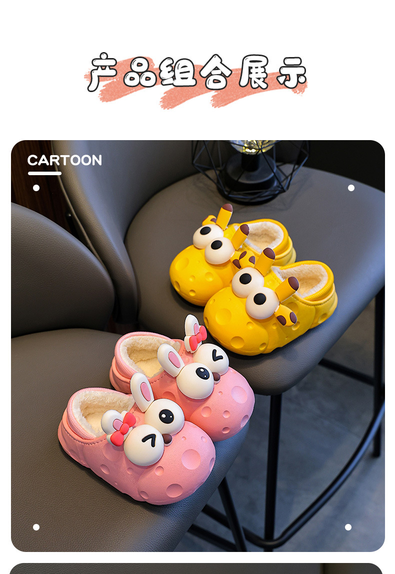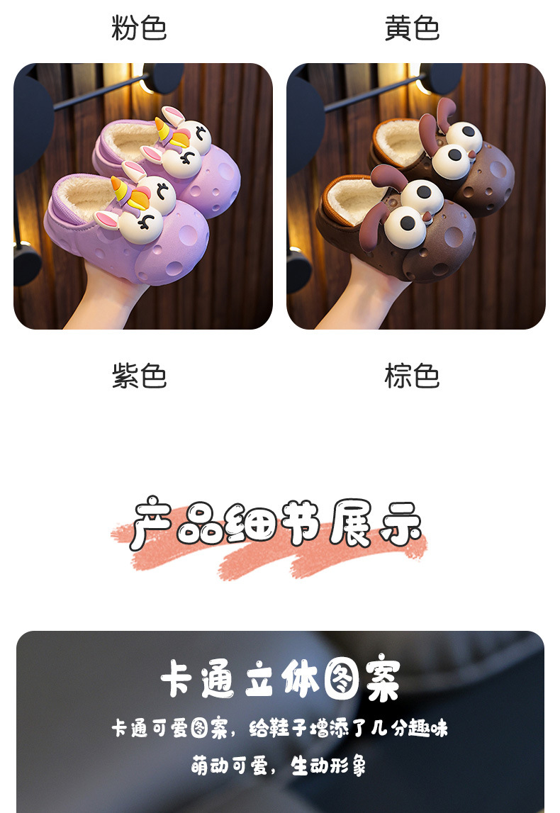 어린이용 겨울 면 슬리퍼, 남아용 실내용 털 슬리퍼, 따뜻하고 미끄럼 방지, 여아용 덧신, 아기용 면화 신발, 보온 및 두꺼운 안감스토어 가기