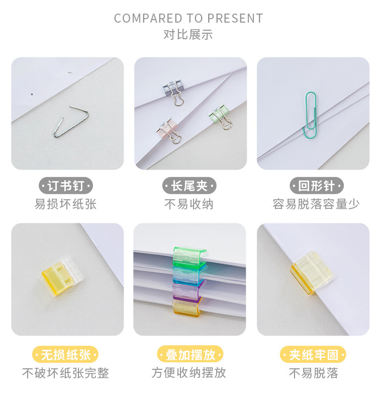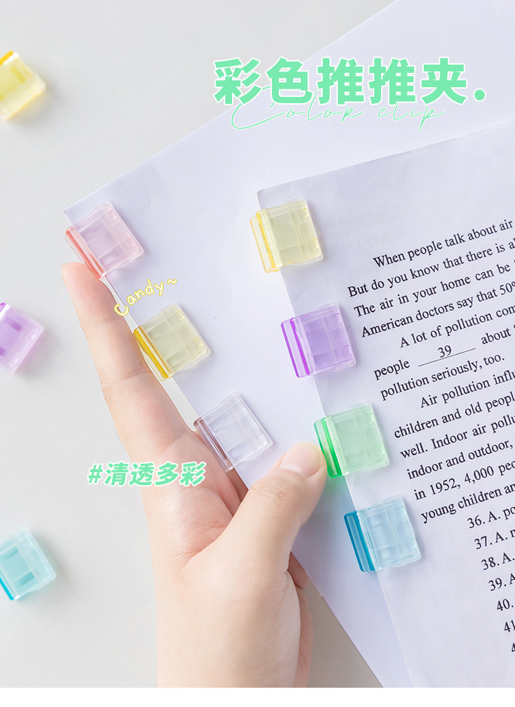 투명 푸시 클립 푸시 클립 시험지 보관 고급스러운 흔적 없는 바인딩 사무용 문서 문구 고정 소형 클립스토어 가기