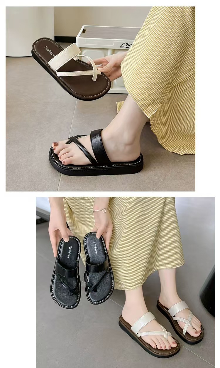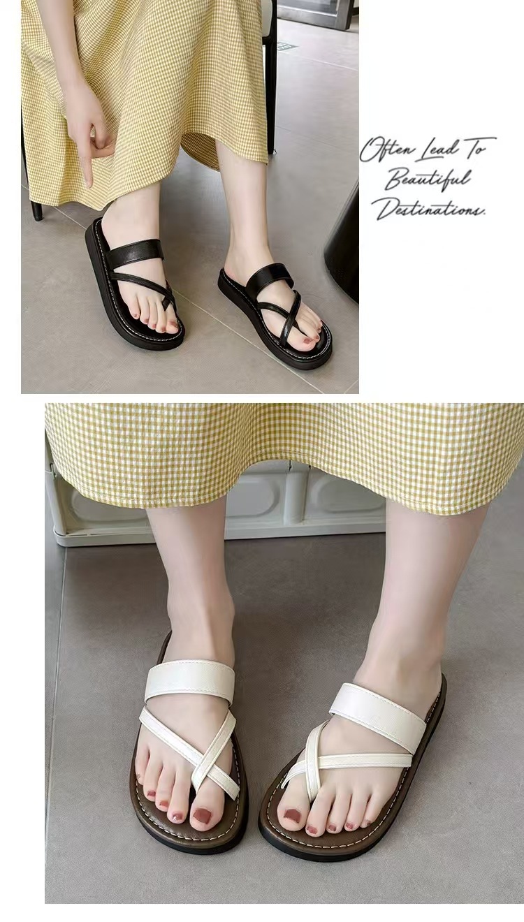 여름 새로운 발가락 슬리퍼 여성 인터넷-유명한 패션 올 매치 크로스웨어 미끄럼 방지 비치 신발 캐주얼 플랫 슬리퍼