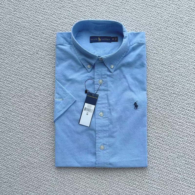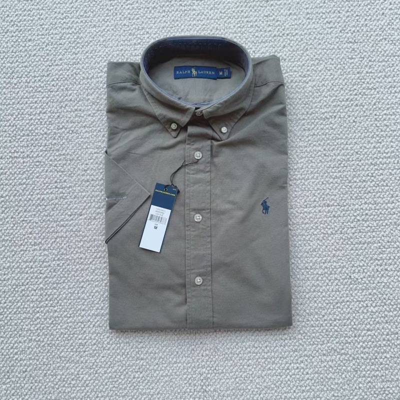 RL 랄프 로렌 셔츠 짧은 소매 조랑말 로고 자수 단색 옷깃 캐주얼 비즈니스 남성 셔츠 머리카락 세대스토어 가기