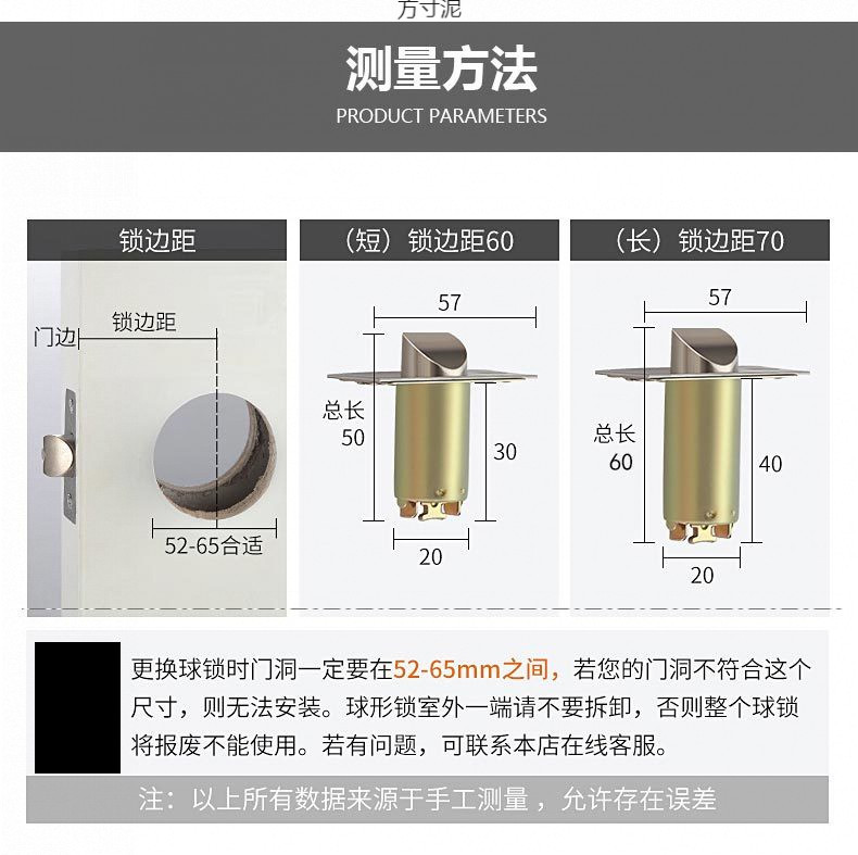 • 두꺼운 스테인레스 스틸 [순동 잠금 코어 + 고급 액세서리 8종 세트] - 열쇠 포함 [60mm/70mm 범용 모델]