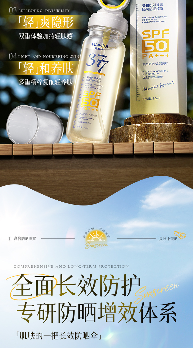 흔들리는 톤 폭발 미백 선 스크린 스프레이 주름 방지 멀티 효과 격리 자외선 차단제는 작은 조리개 태양이 어둡지 않은 평면에있을 수 있습니다.스토어 가기